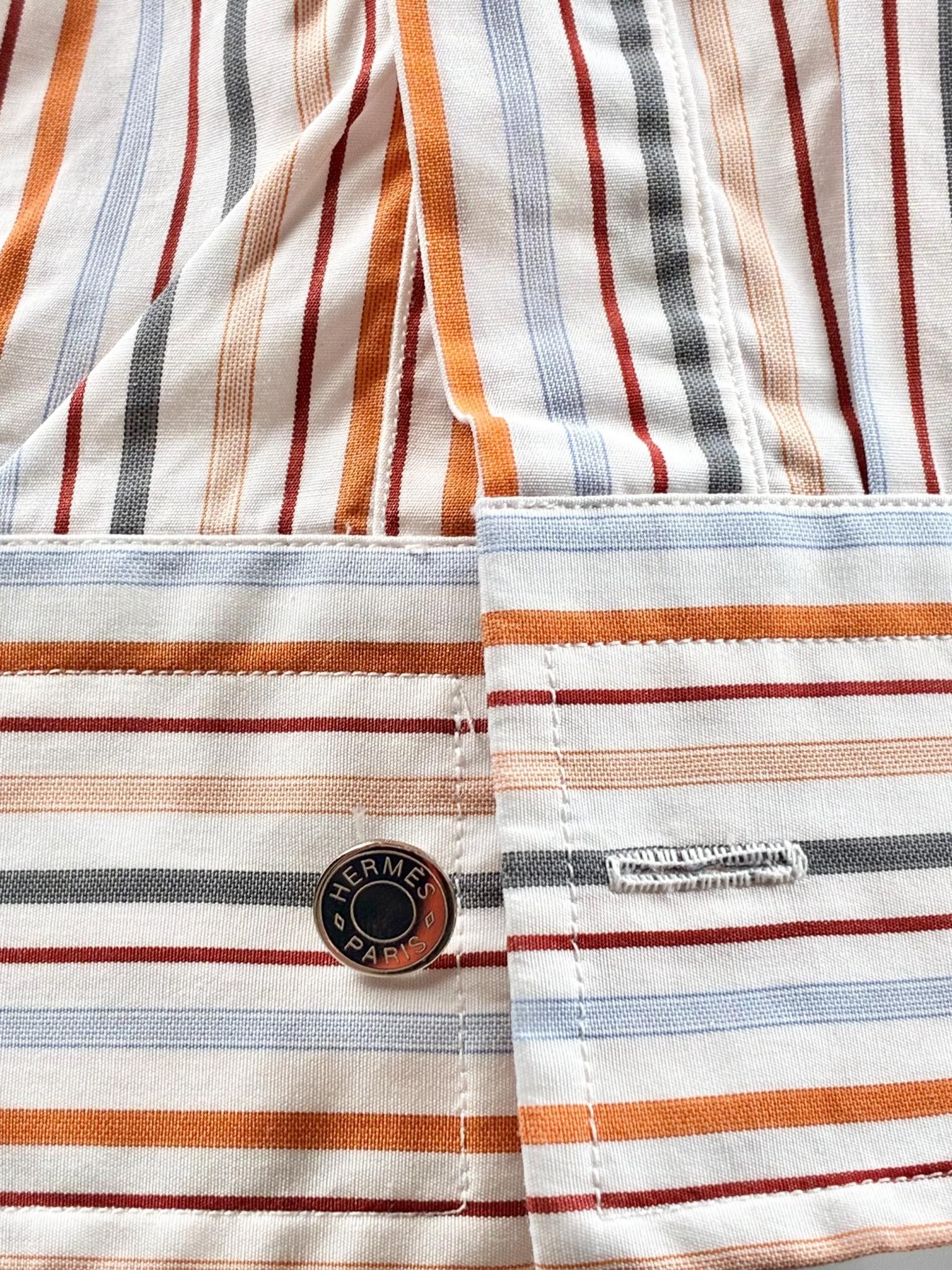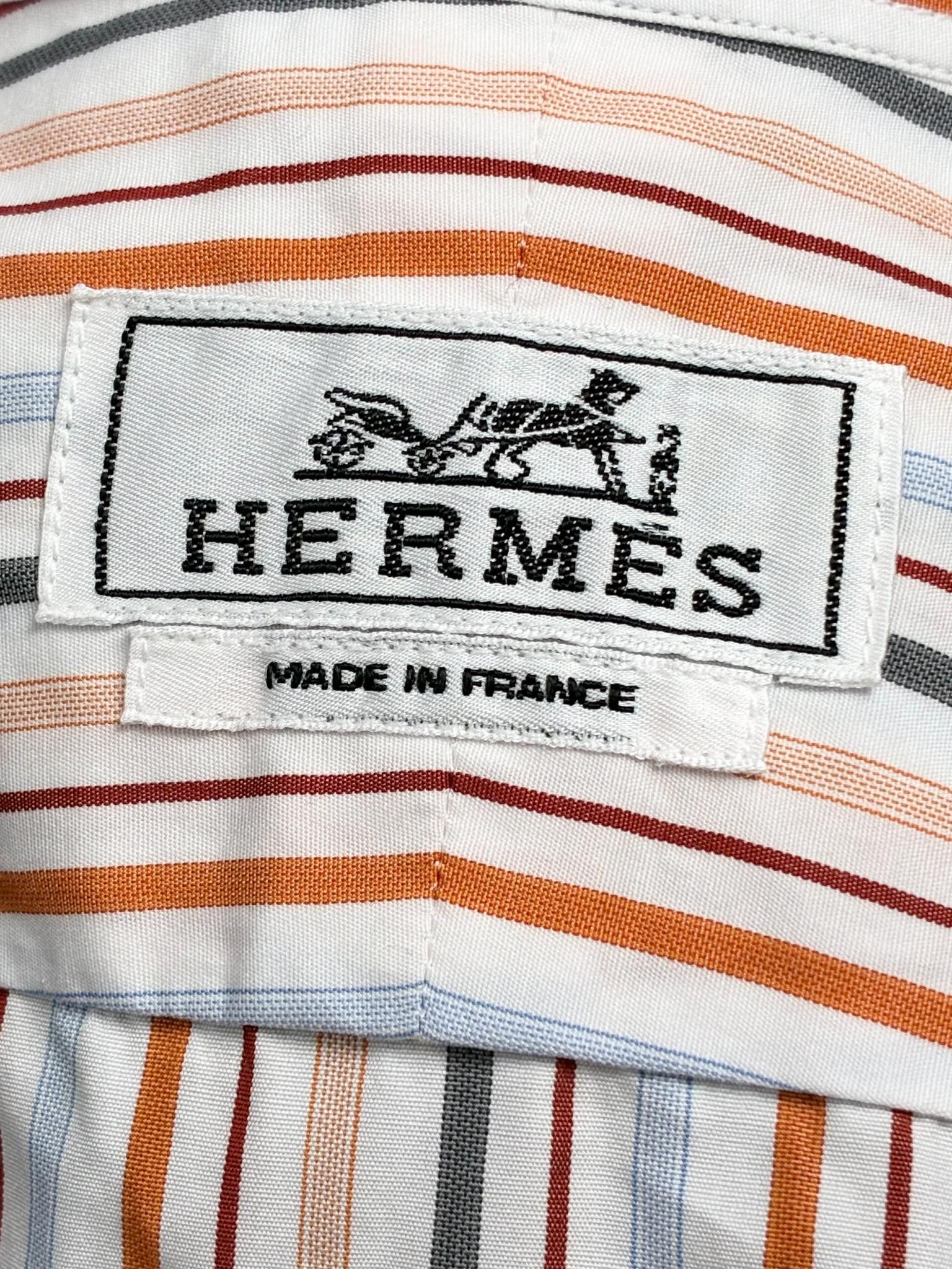 HERMÈS PARIS Long-sleeved cotton shirt with light blue, burg…