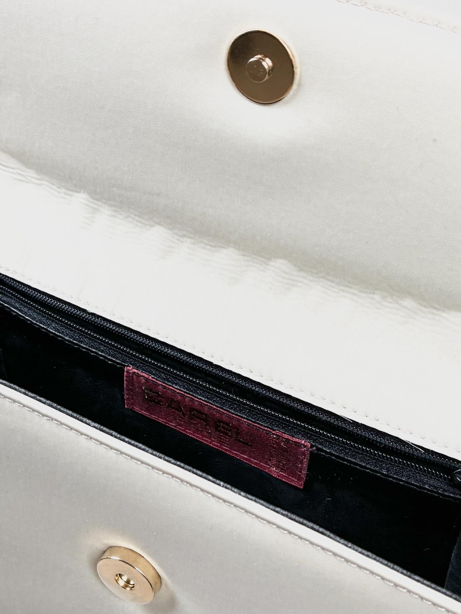 CAREL Paris Rectangular shoulder bag in beige fabric with bl…