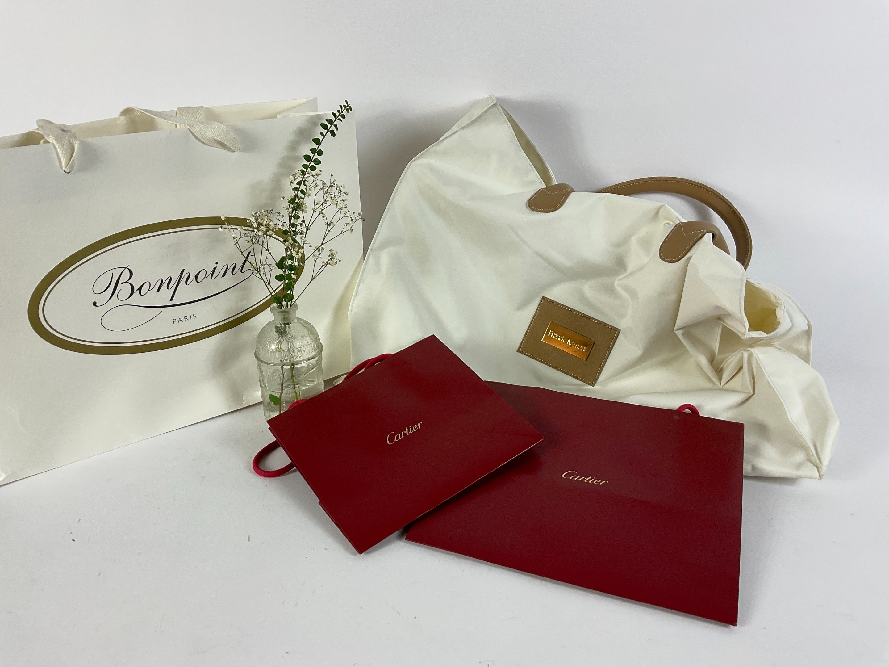 Packaging lot including: Franck Namani: a shopping bag; Cartier: two clutches; Bonpoint: a bag.