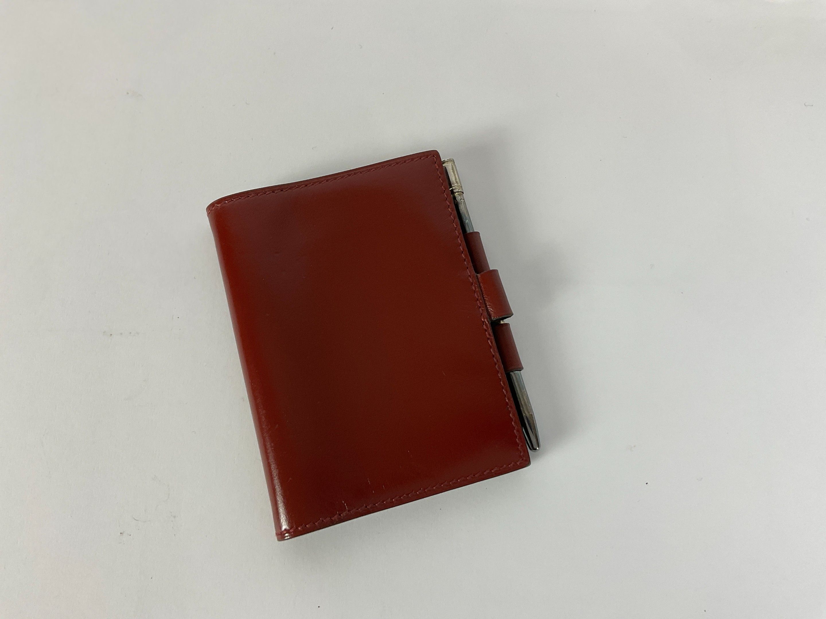 2/ Hermès Paris Small cognac-coloured box notebook and its small silver mechanical pencil, P.B.: 6 g approx. Signed, H: 10 cm - W: 8 cm (Good condition)