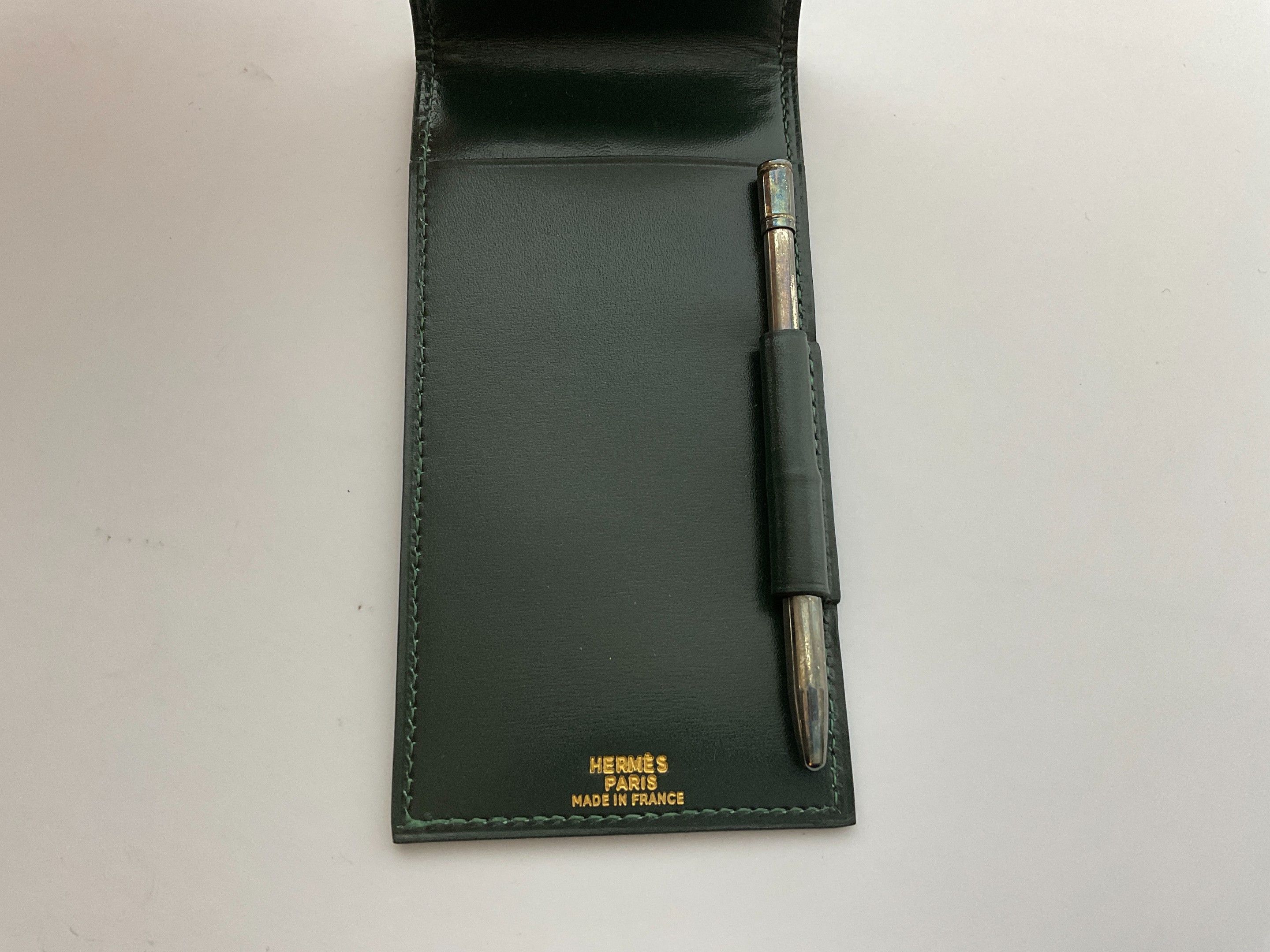 3/ Hermès Paris Green lizard notepad and silver mini mechani…