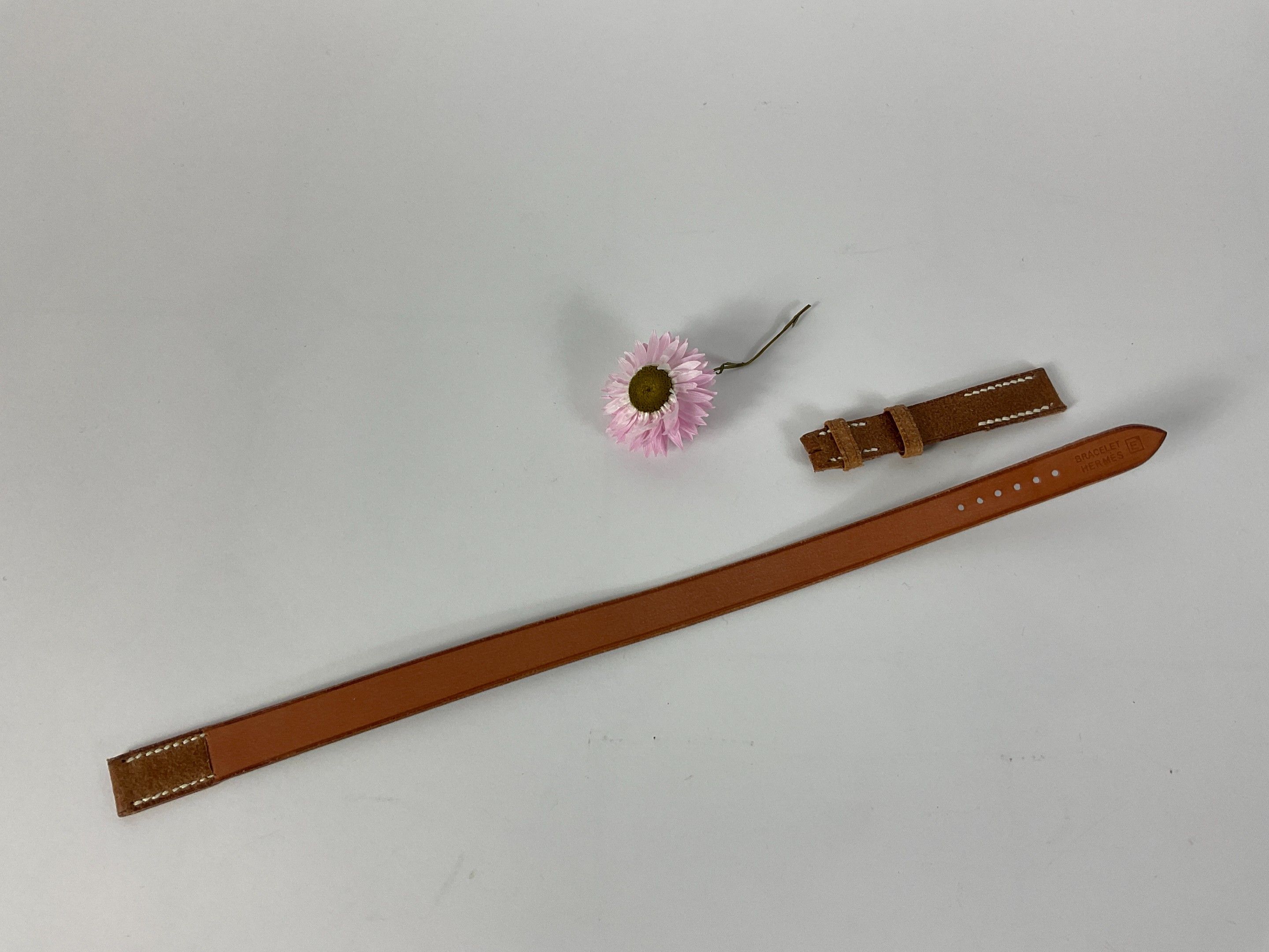18/ Hermès Paris Watch strap in stitched natural leather, wi…