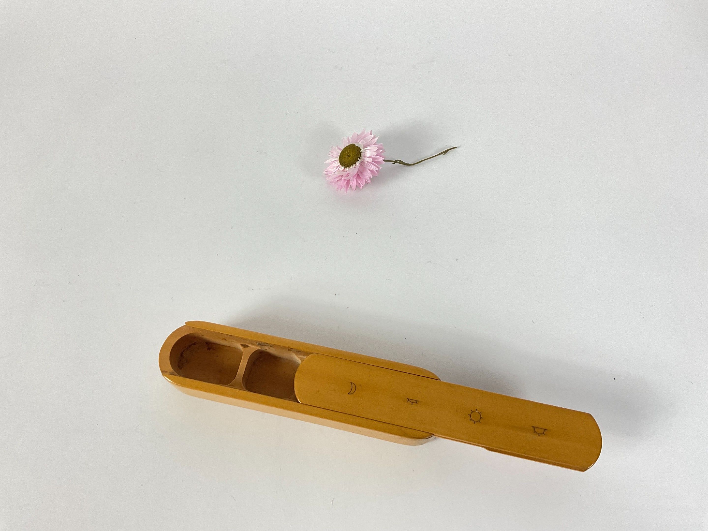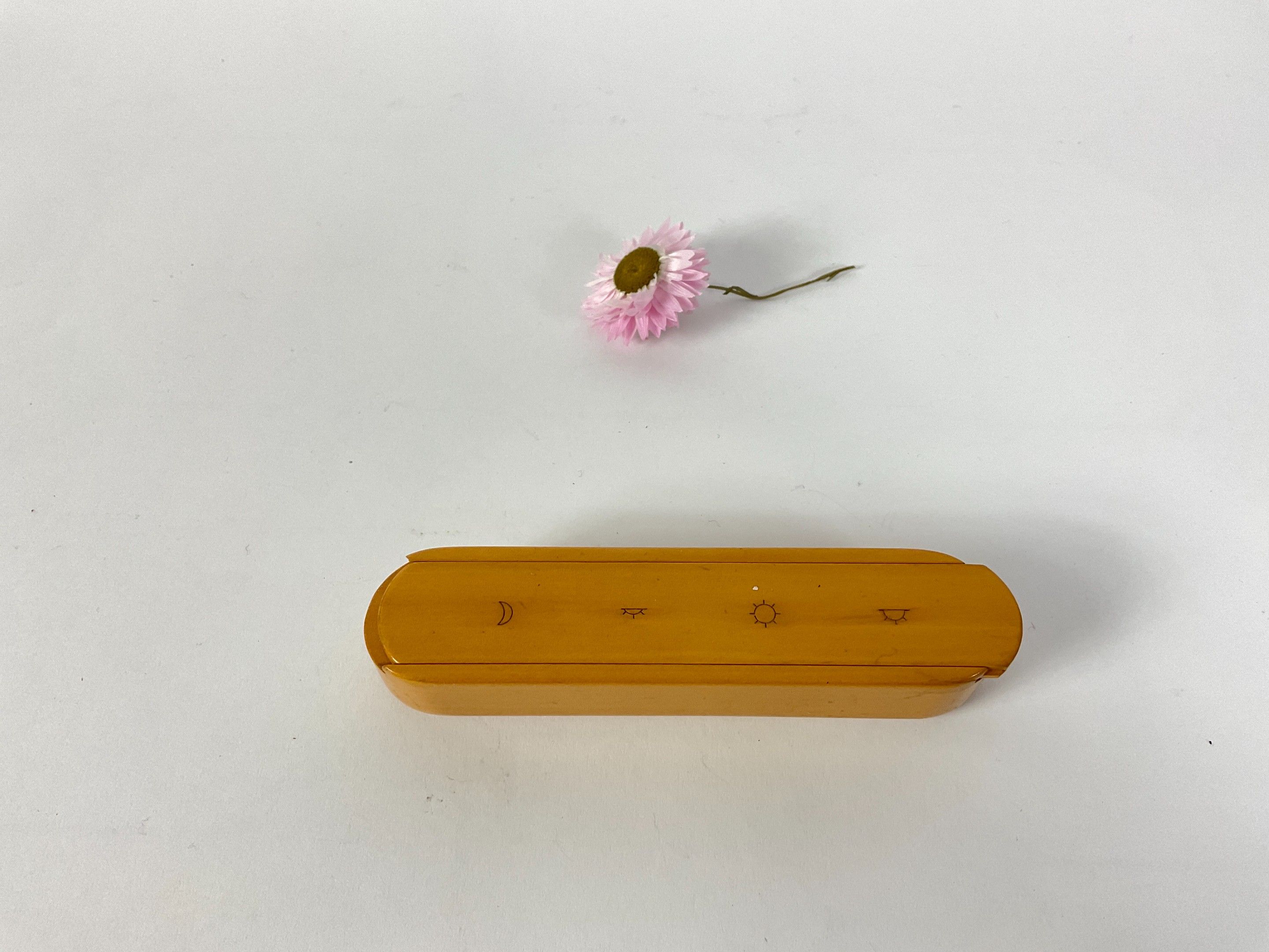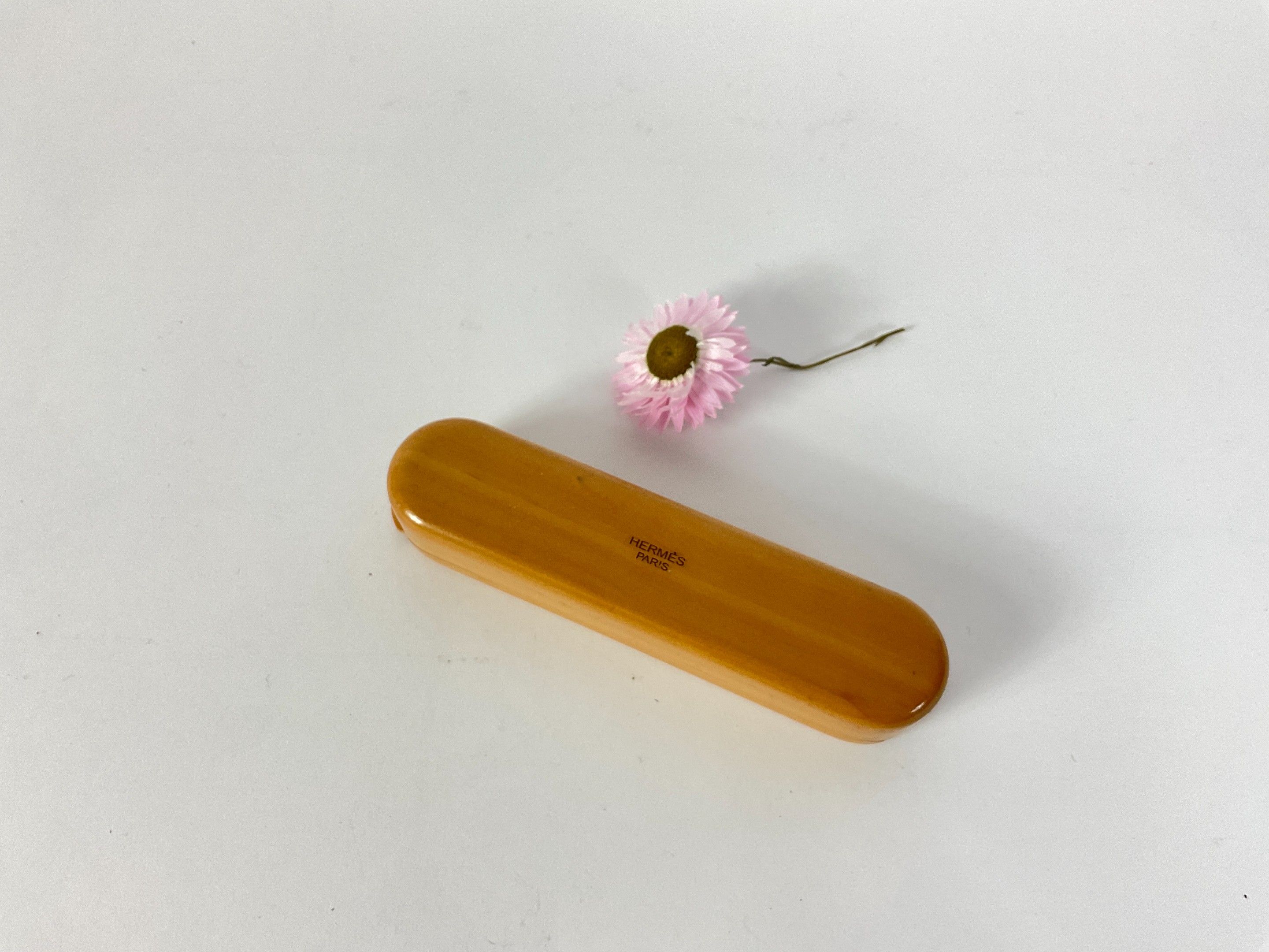 Hermès Paris Pillar in light wood engraved with the four symbols of the day, Signed, H: 3 cm - W: 13 cm
