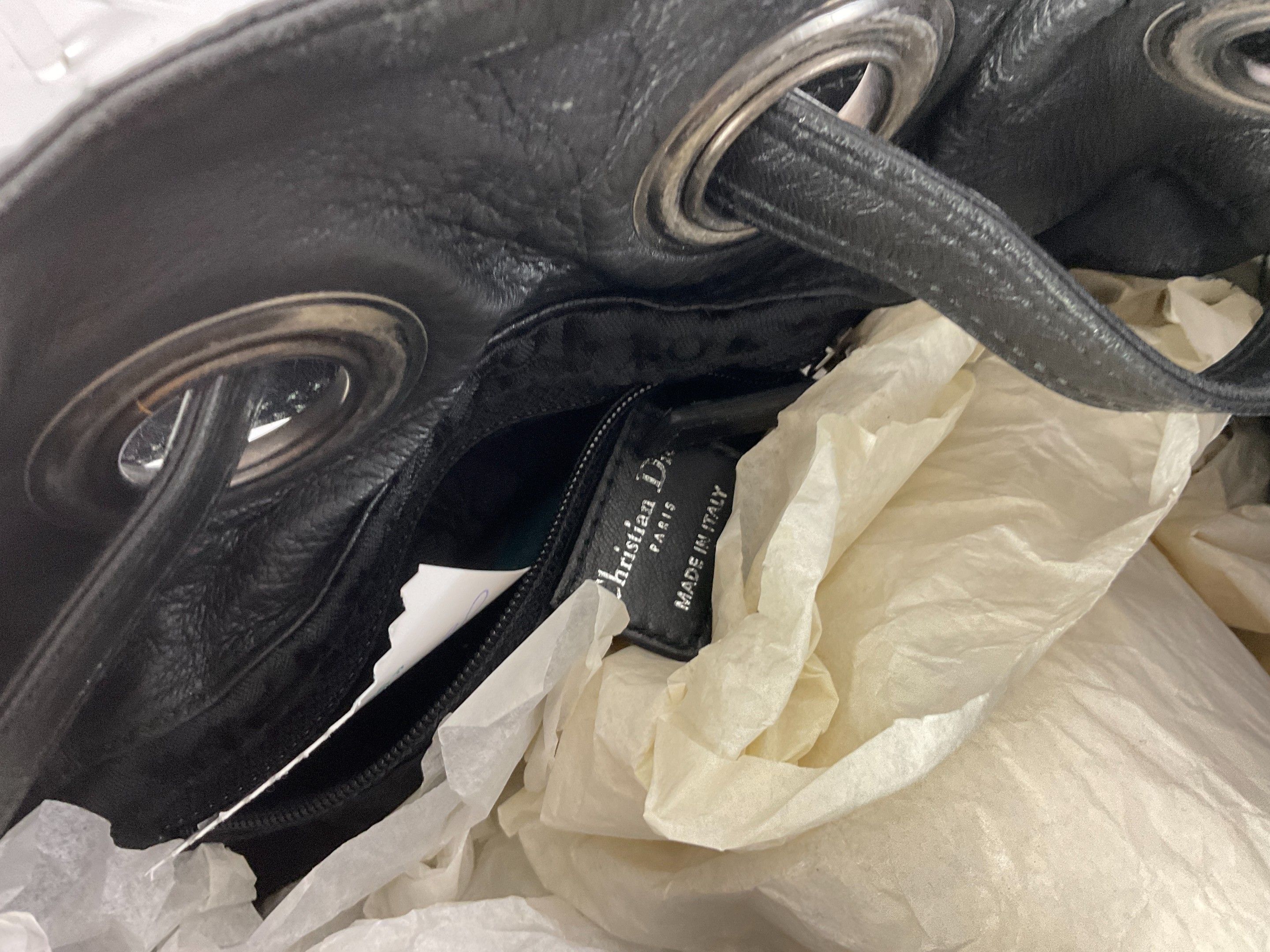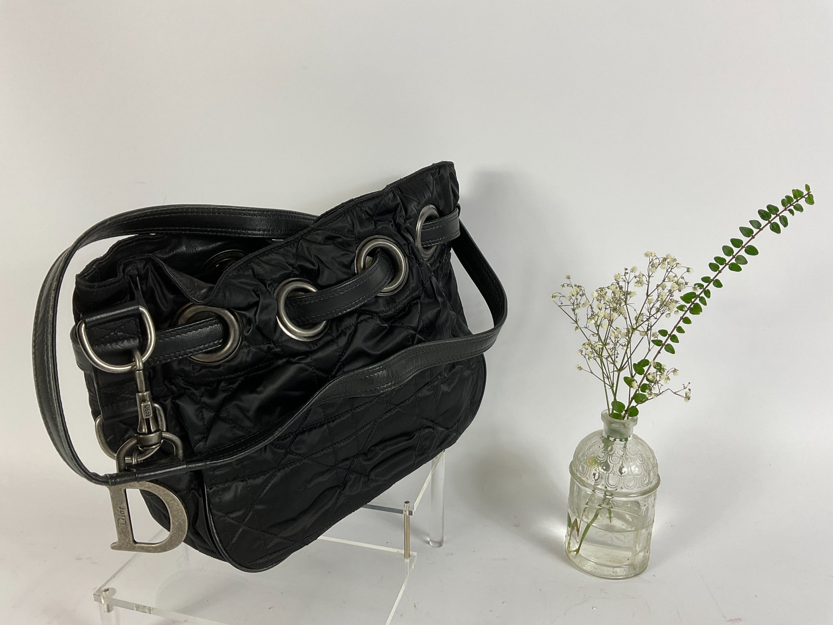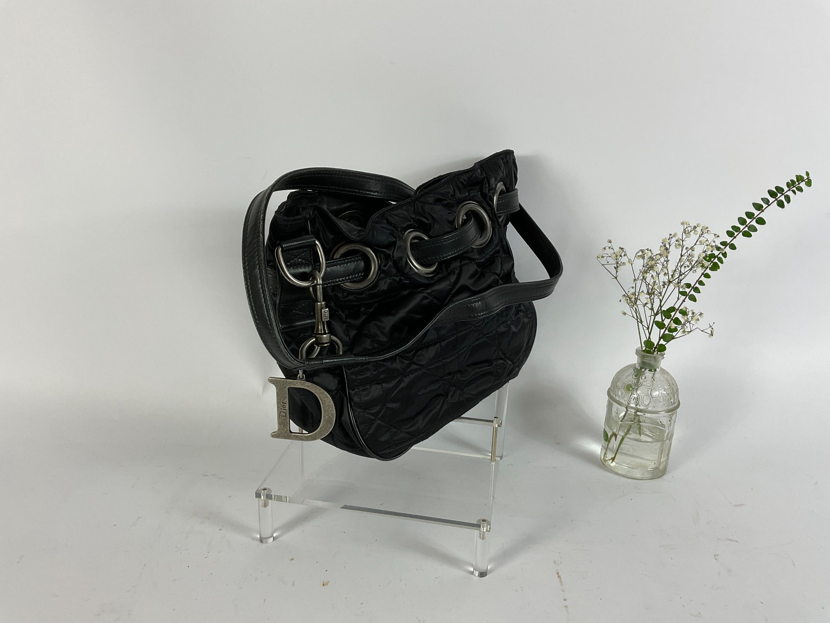Christian Dior Handbag in black nylon with diamond stitching, large rivets, large snap hook and charm, D monogram in gunmetal with patina and strap, inside zip; stamped Maison Christian Dior; H: 23 cm - W: 30 cm