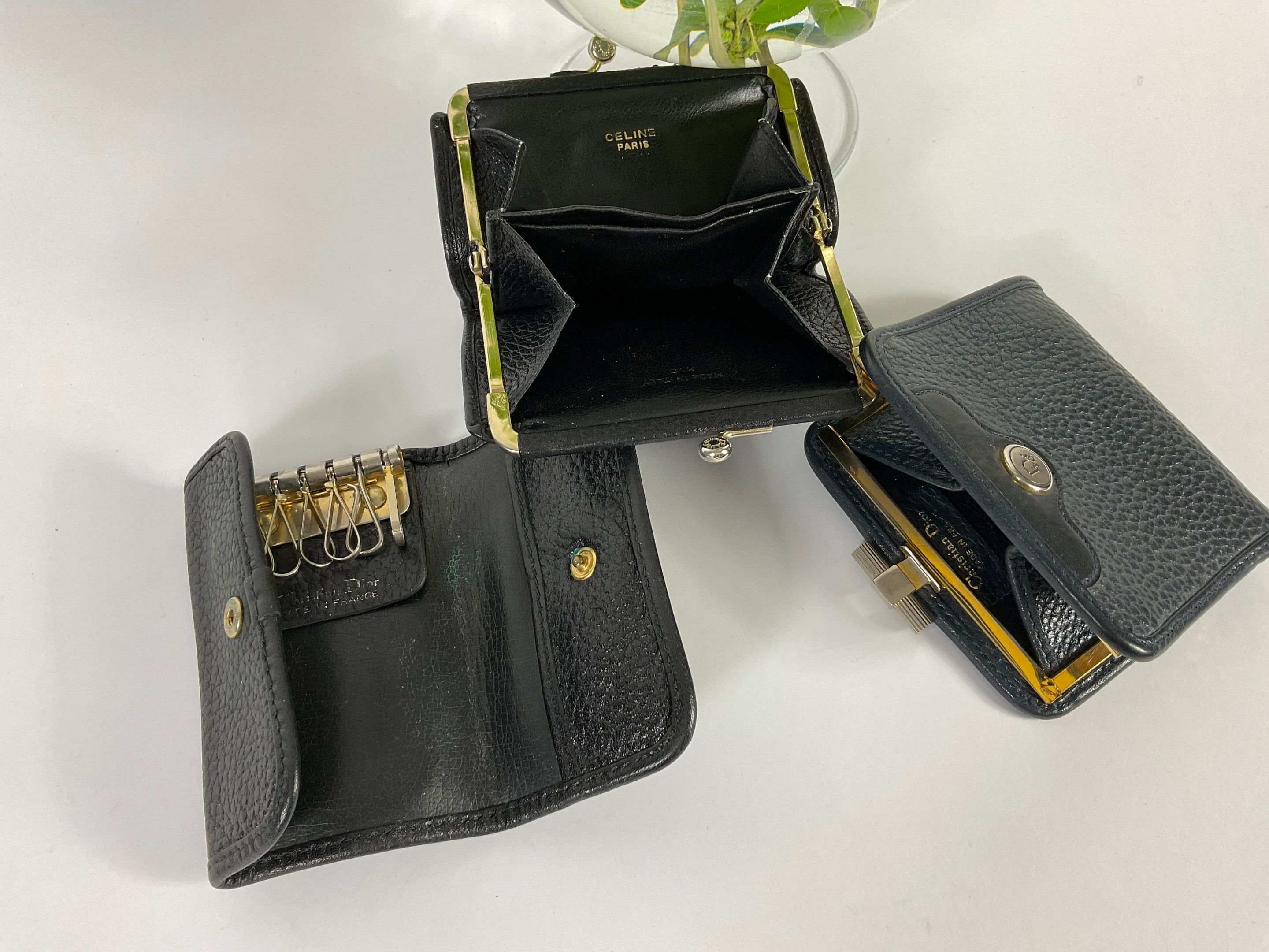 Christian Dior licence, Céline Lot including: Christian Dior Licence: A brown grained leather press stud purse; Christian Dior Licence: A black grained purse; Céline: A vintage push stud purse.