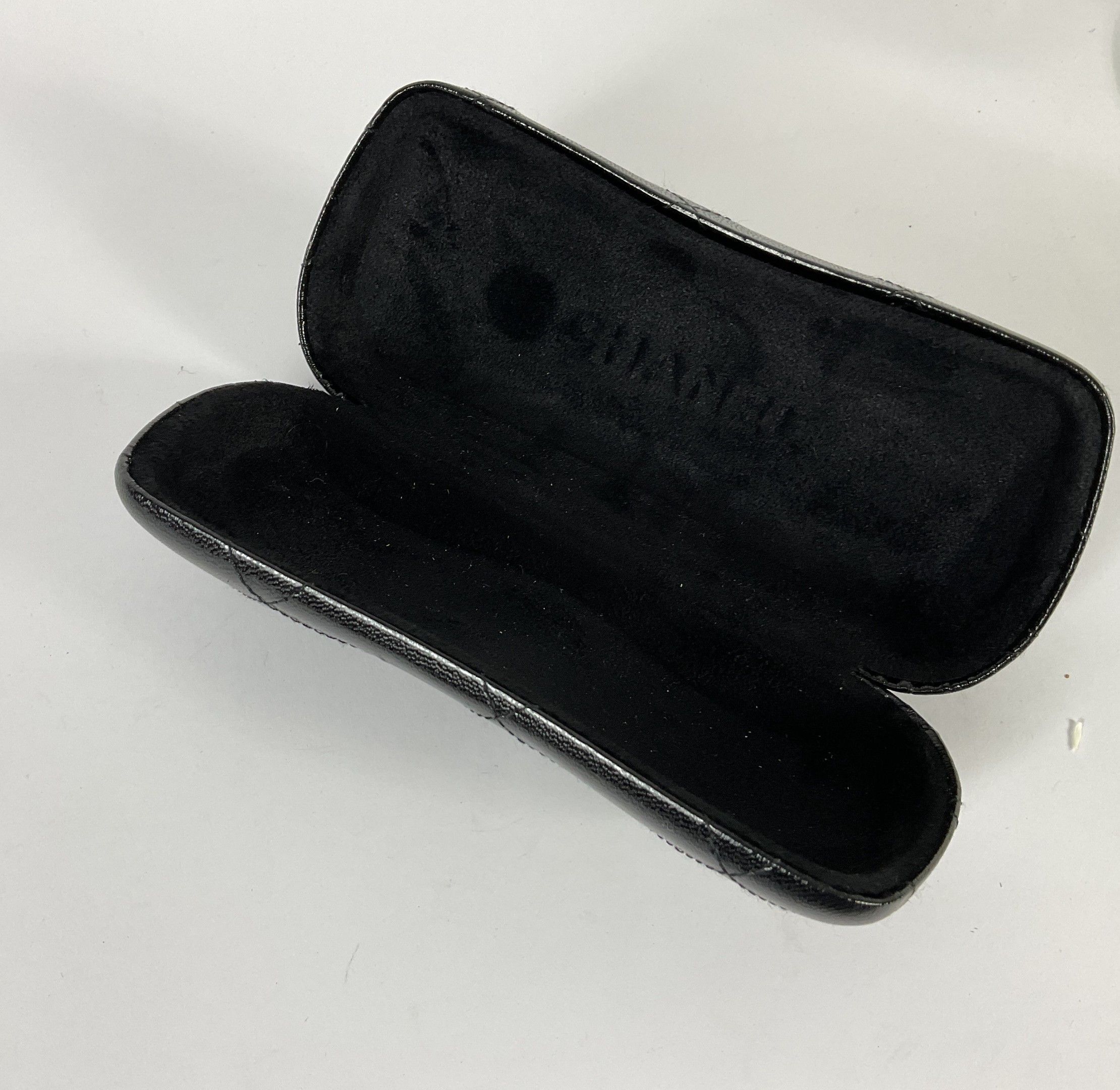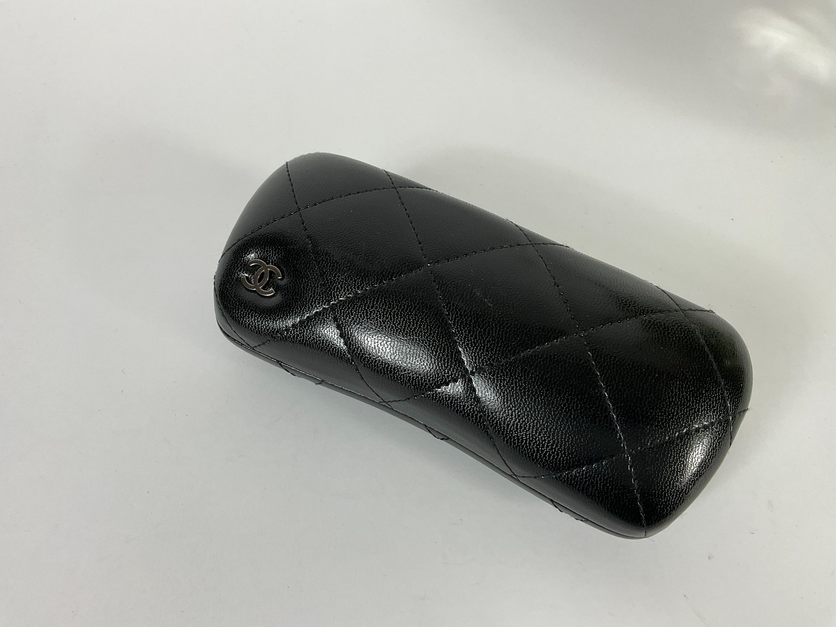 Chanel A quilted glasses case with stitching and the Chanel logo