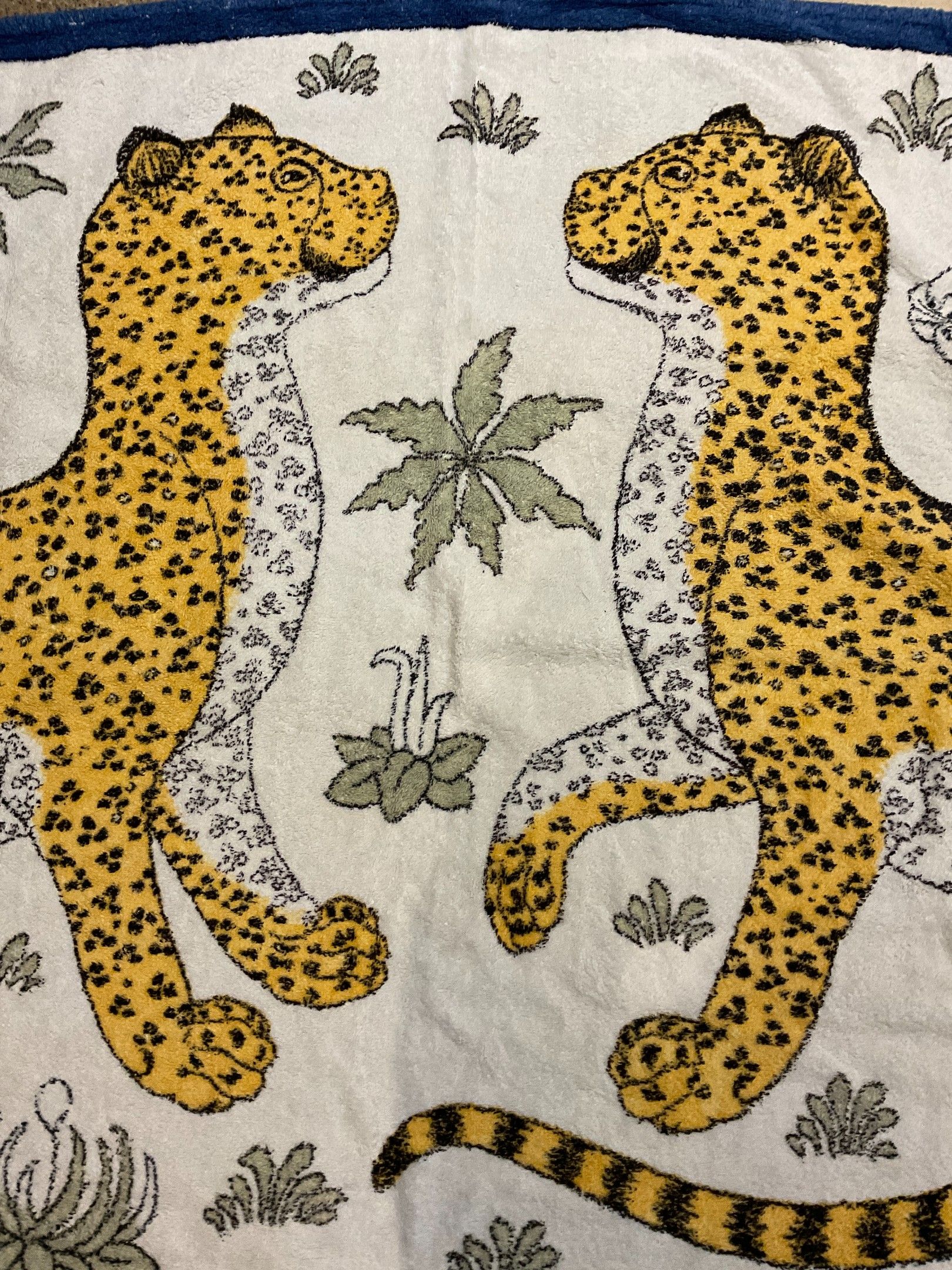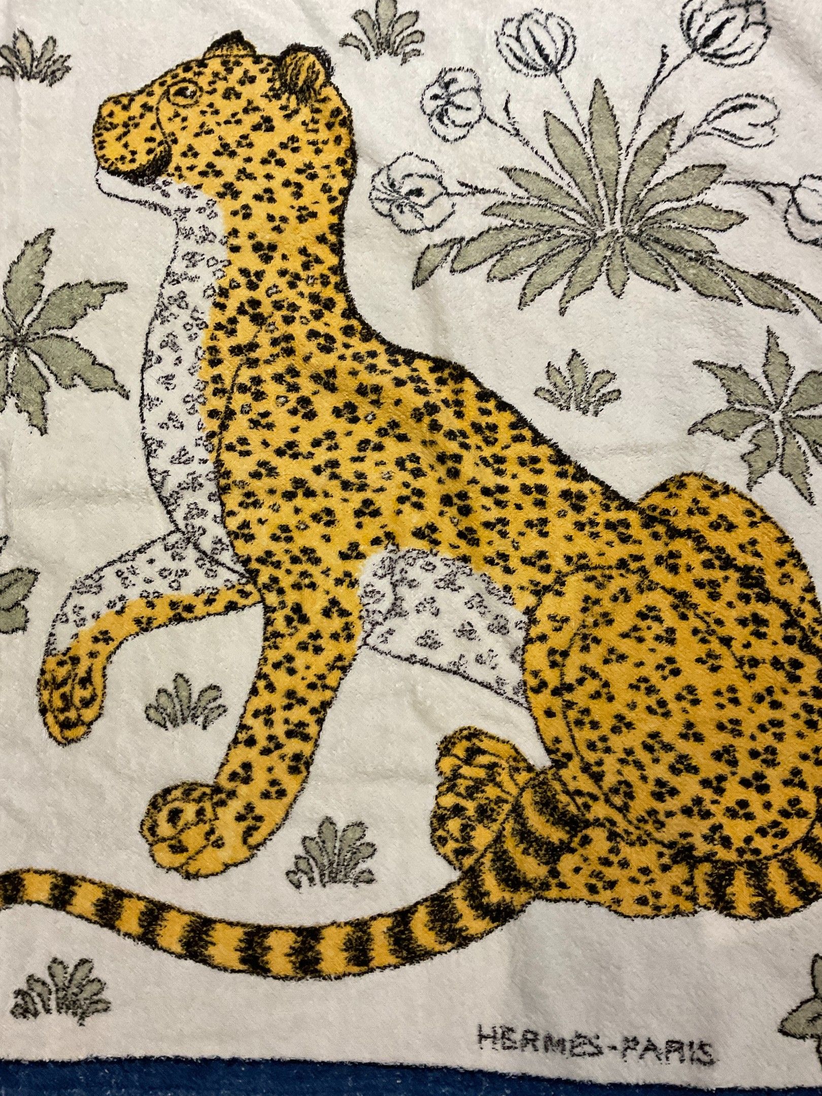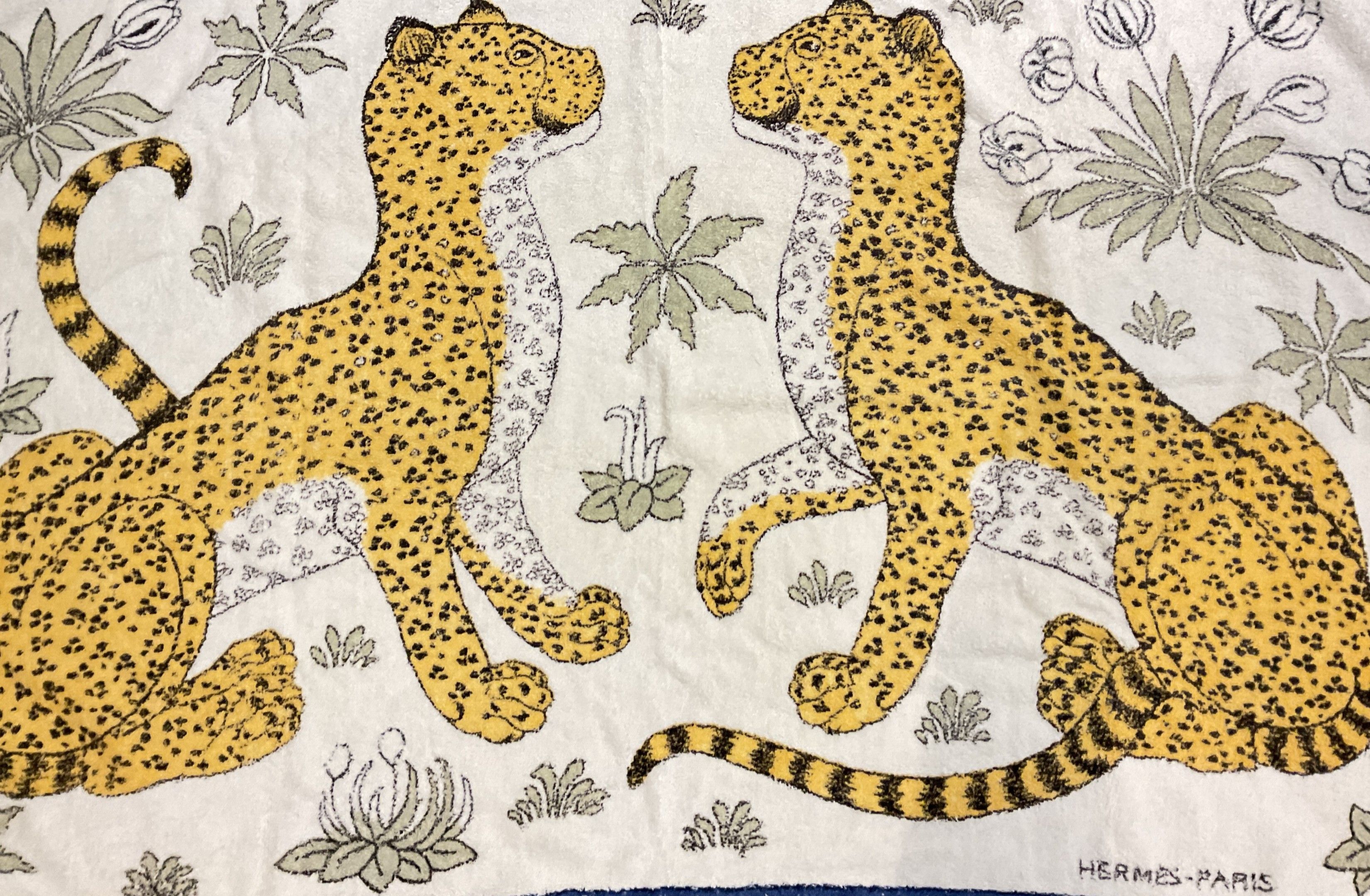 Hermès Paris " Les deux panthères " Towelling bath sheet ; H…