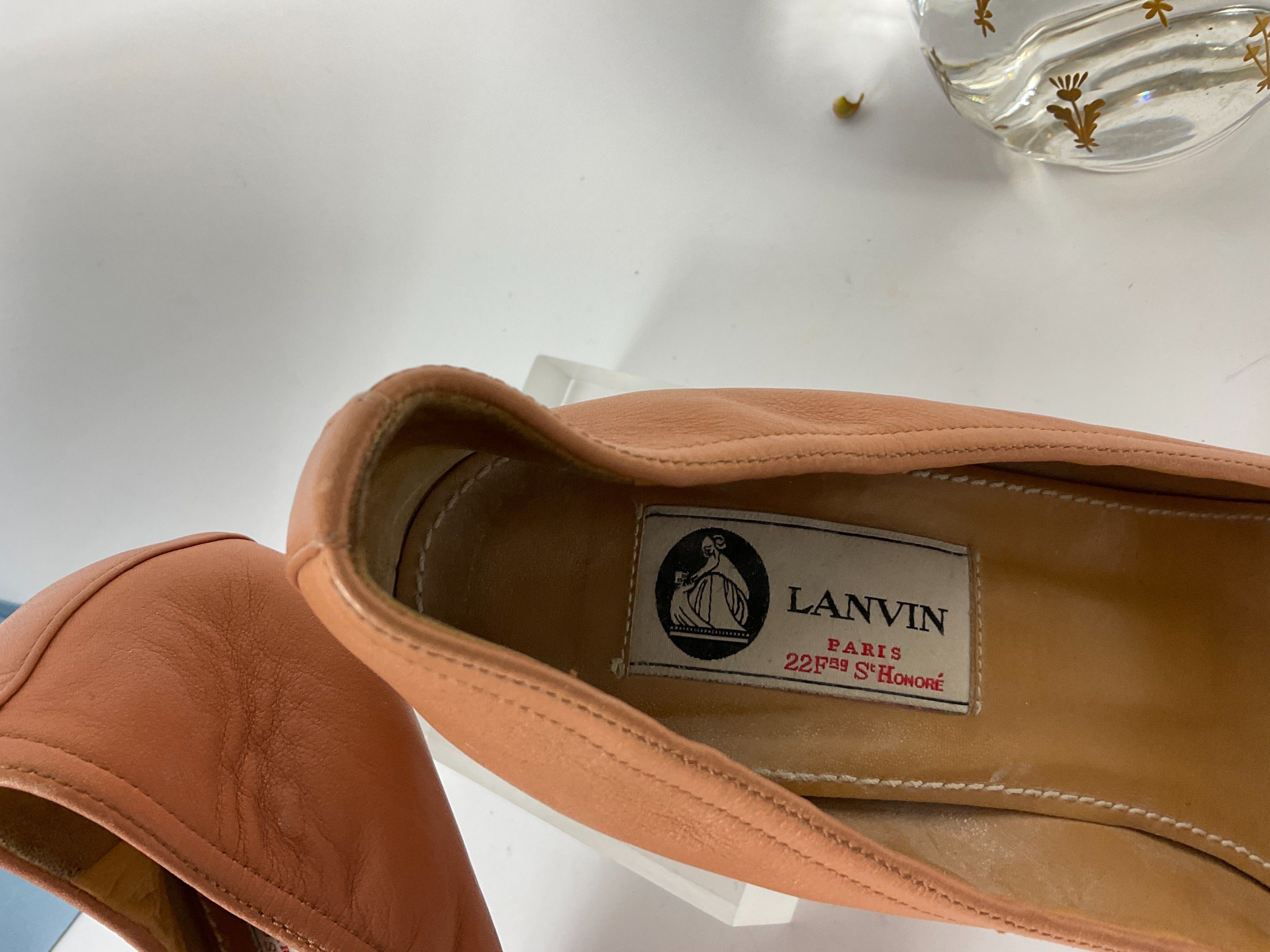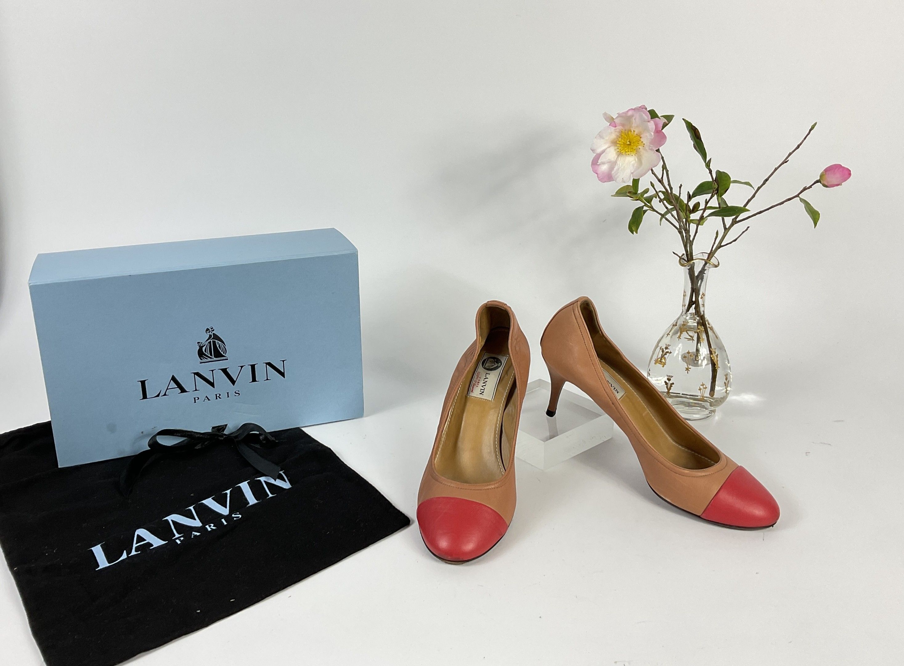 Maison Lanvin A pair of old pink leather pumps with raspberry tips; In box and Lanvin clutch bag, Size 39