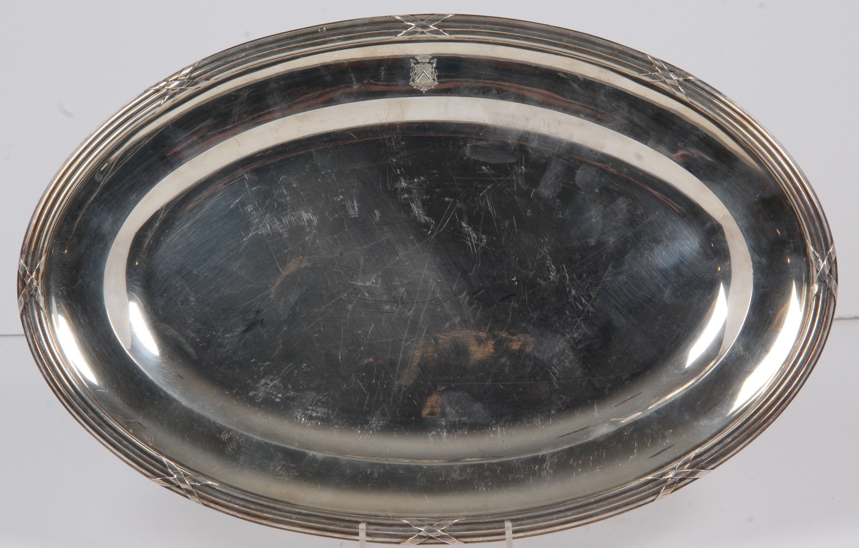OVAL PLAT 950 thousandths silver, filets of rushes and ribbo…