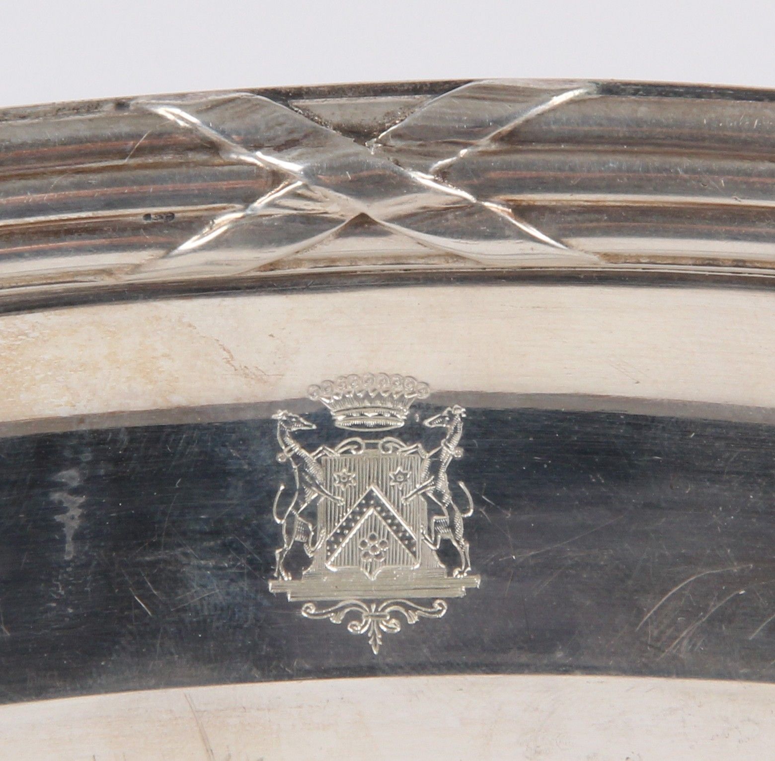 950 thousandths silver, filets of rushes and ribbons model, engraved coat of arms.