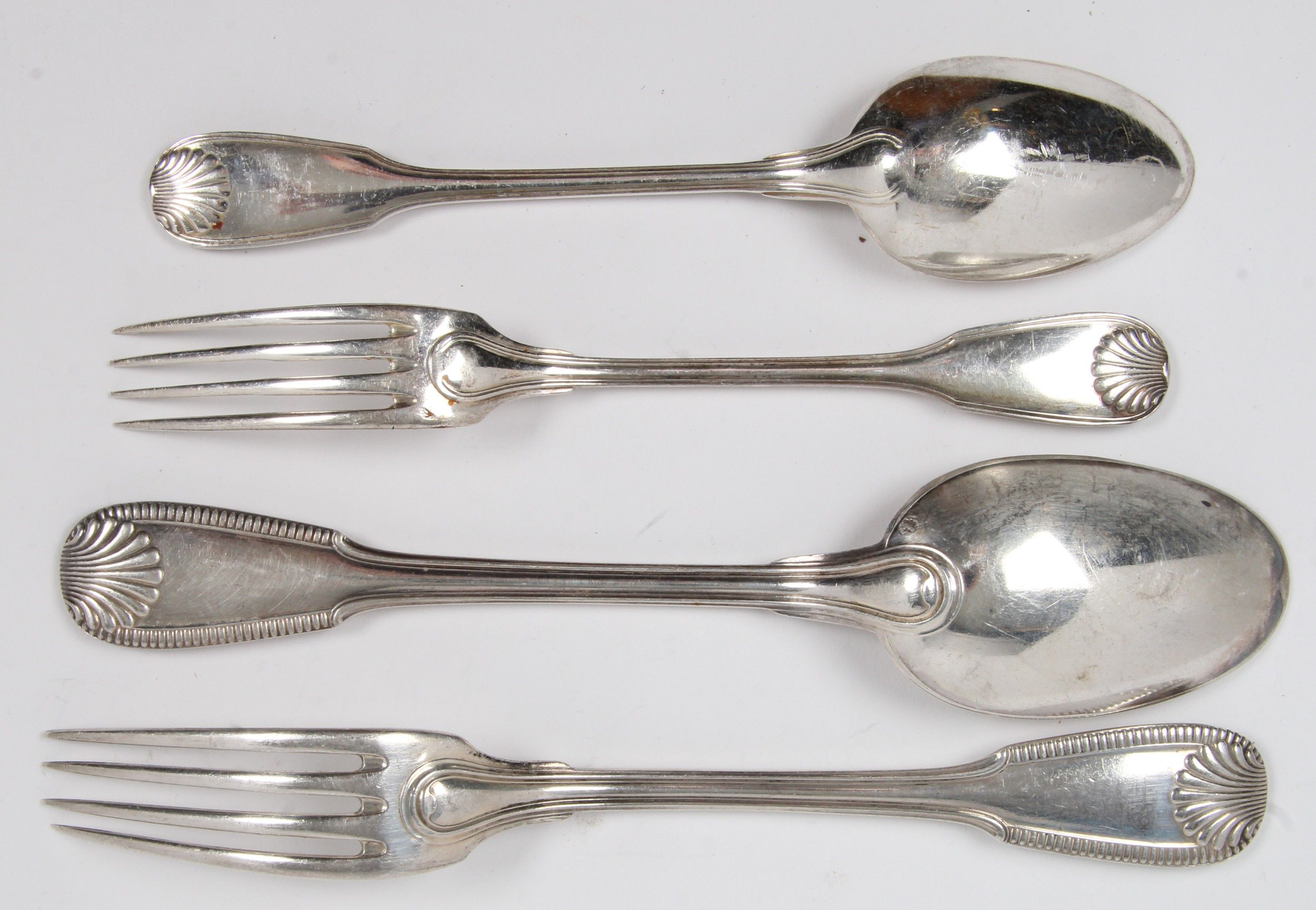 ELEVEN TABLE FORKS, TWELVE TABLE SPOONS AND SIX DESSERT FORK…