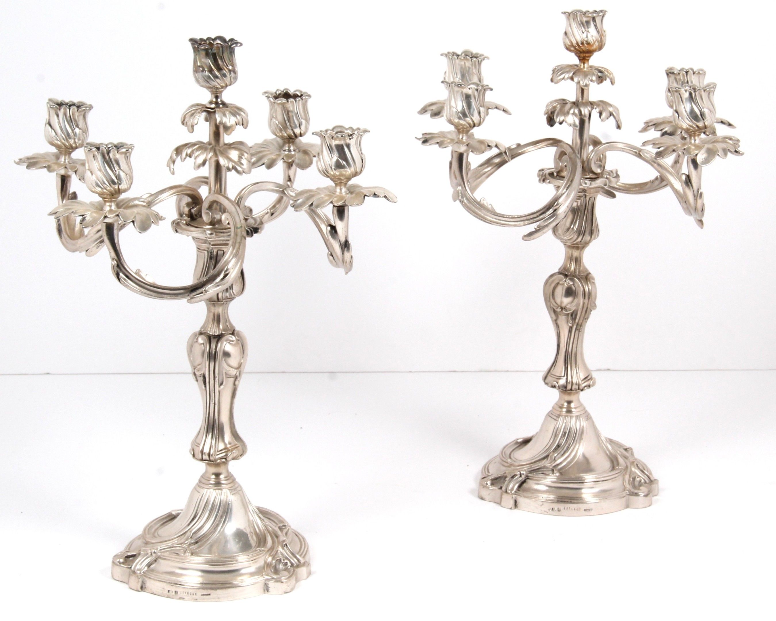 Premium CHRISTOFLE A pair of Louis XV style silver plated candelabra…