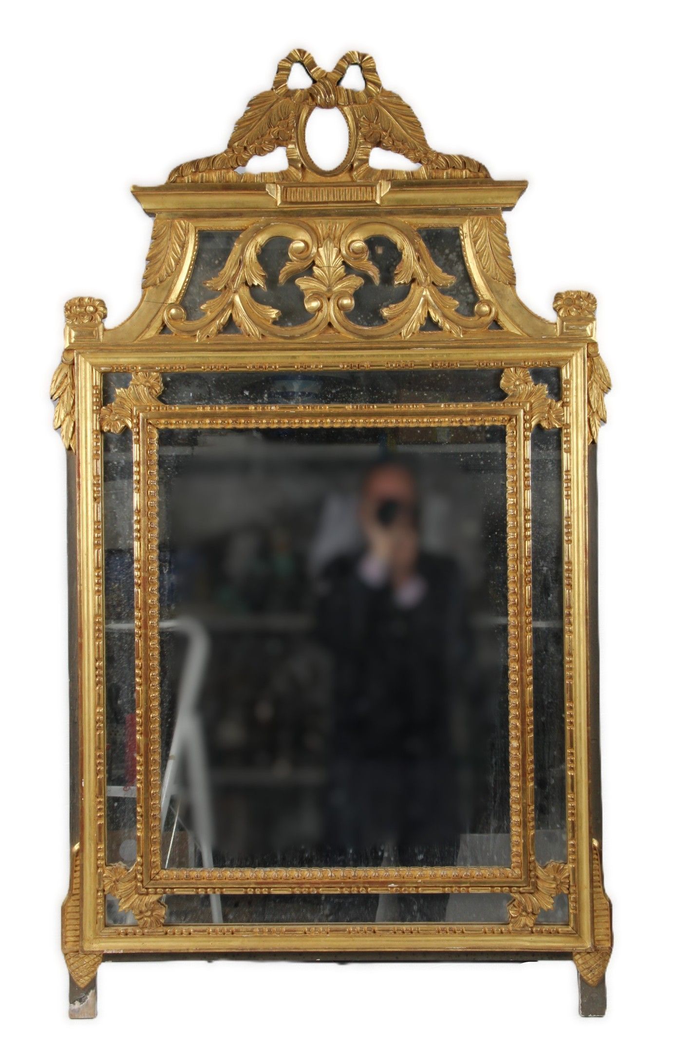 Premium LOUIS XVI STYLE MIRROR in gilded wood and glazing beads, dec…