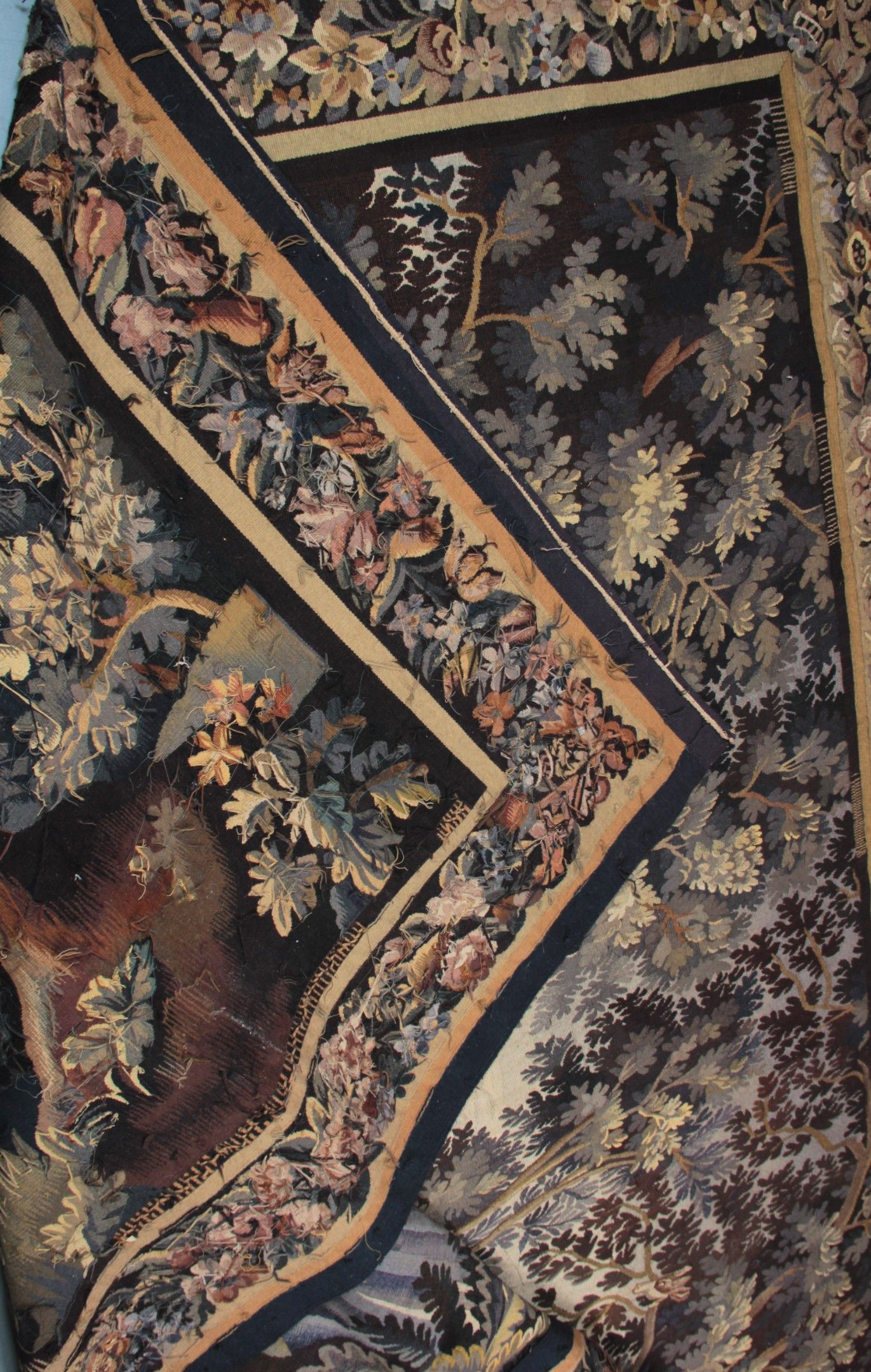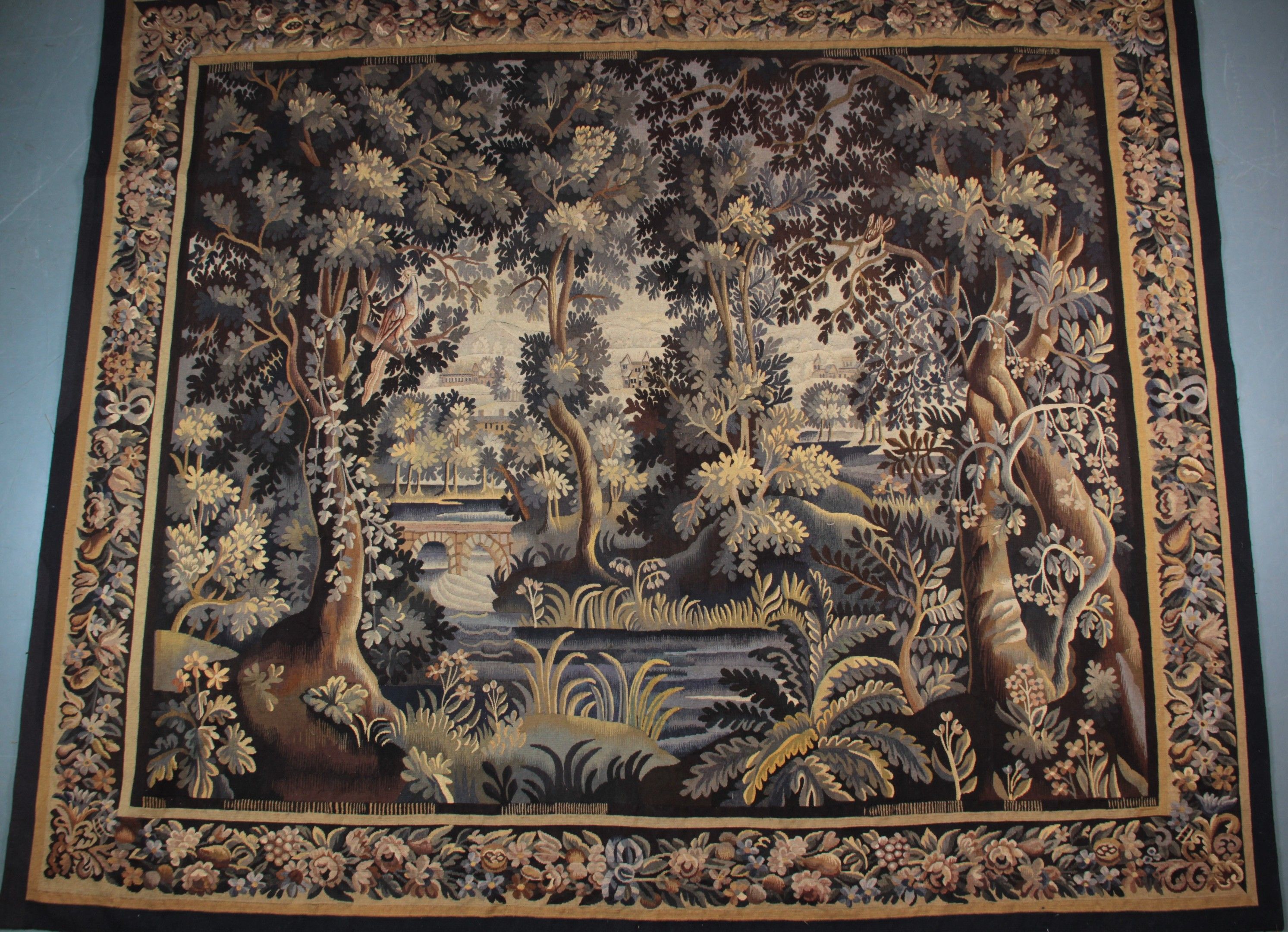 Greenery decorated with river, undergrowth and castles. Large border with foliage, fruit, ribbon bows and four foliate spandrels.