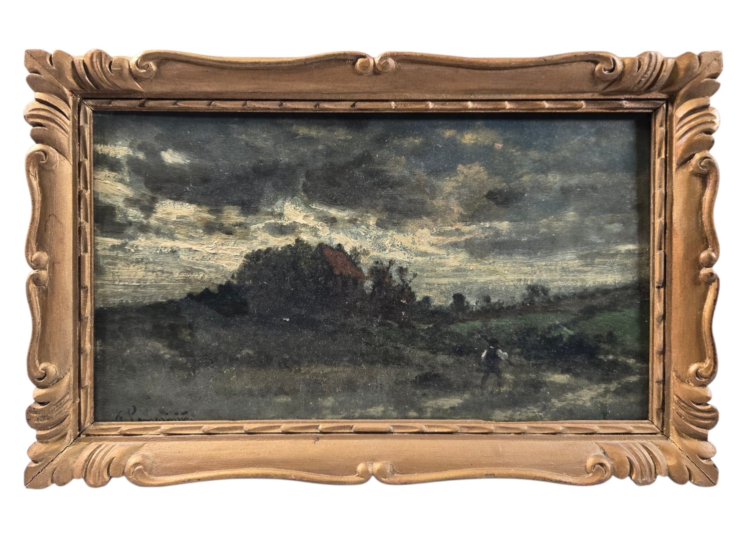 Oil on panel, signed lower left, 6.6 x 11.4 in, with frame : 8.2 x 13.3 in