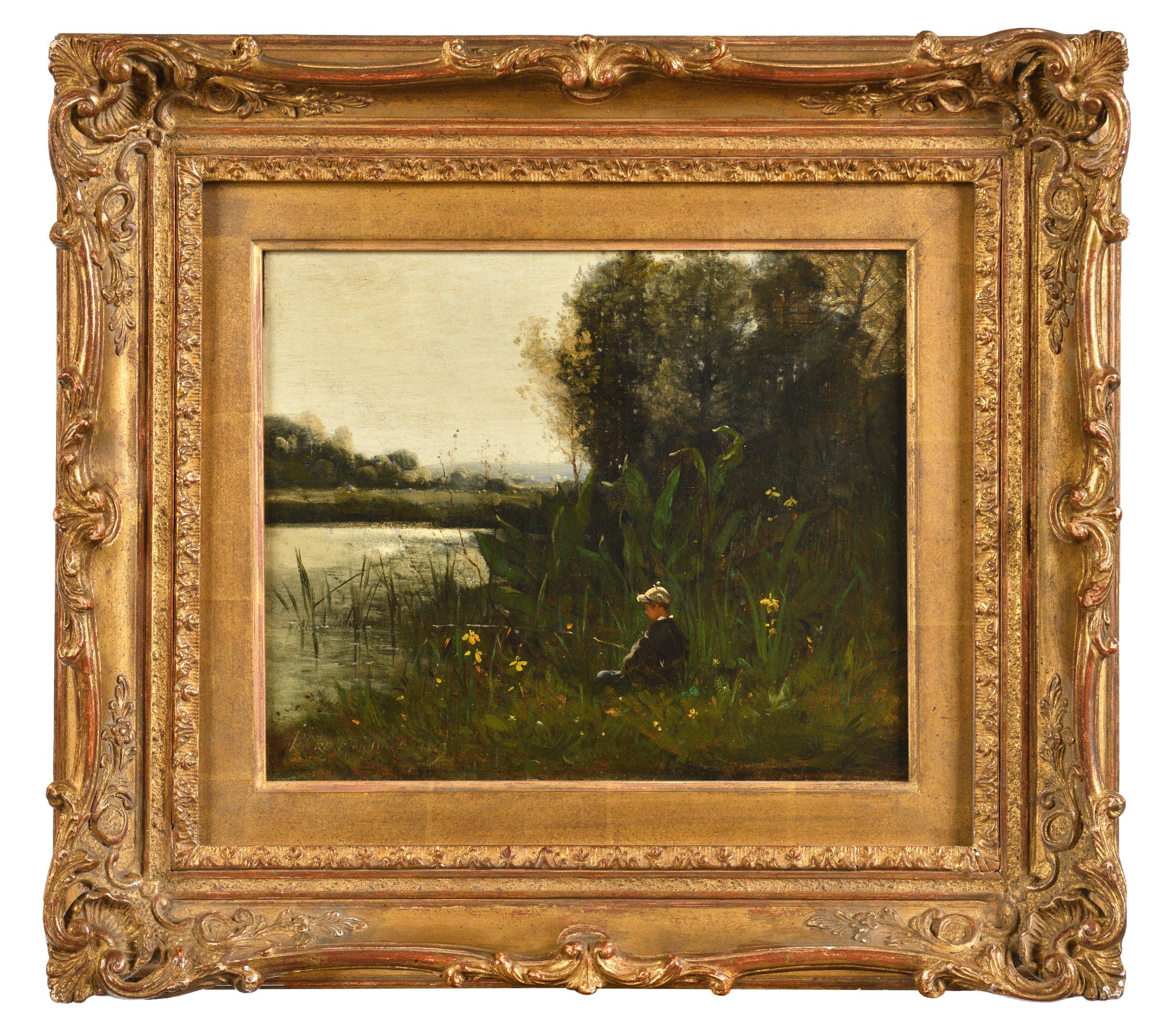 Oil on canvas, signed and dated "1863" (?) lower left, 9.4 x 11.4 in, with frame : 16.5 x 8.5 in
