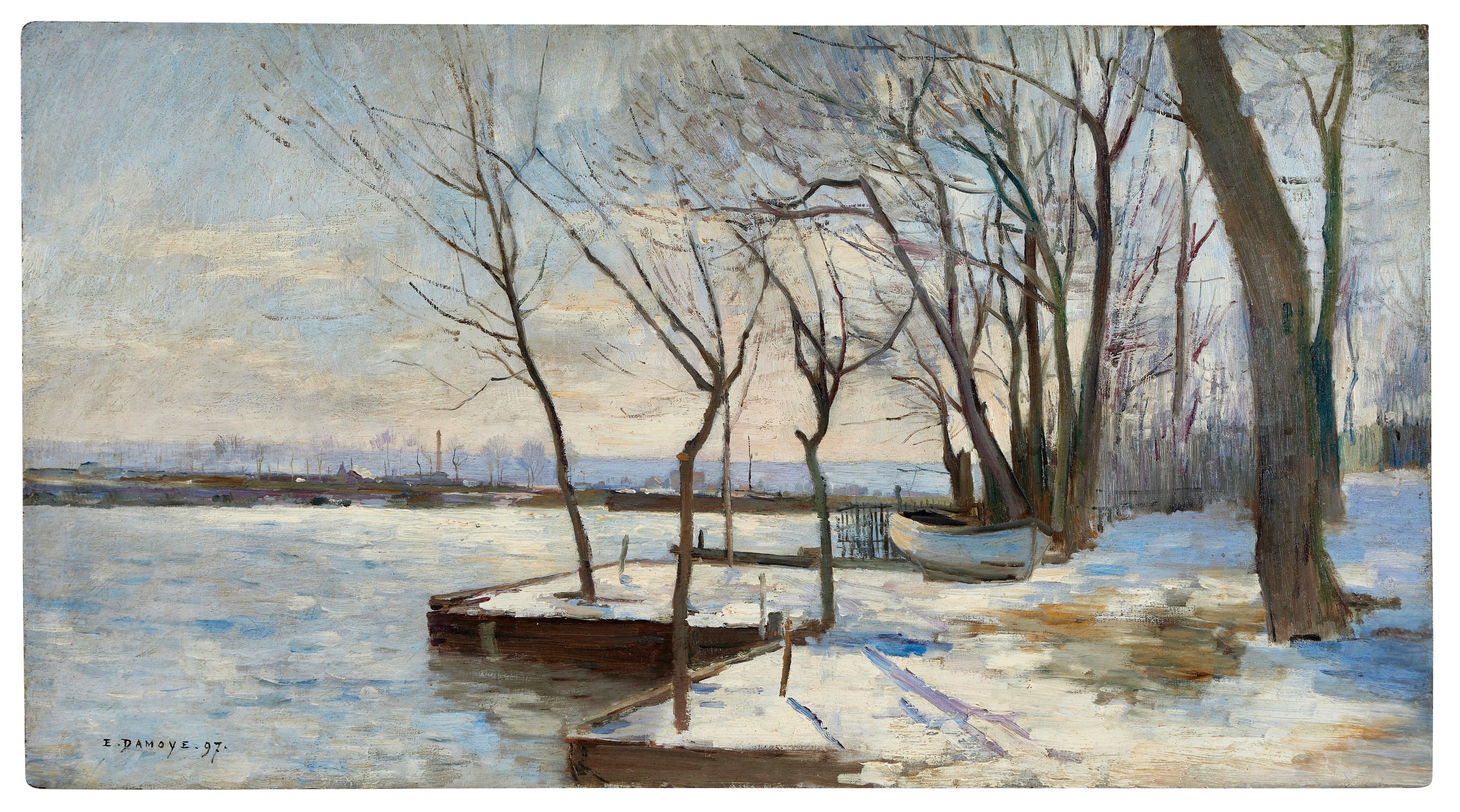 Oil on panel, signed and dated "(18)97" lower left, 12.5 x 23.6 in
