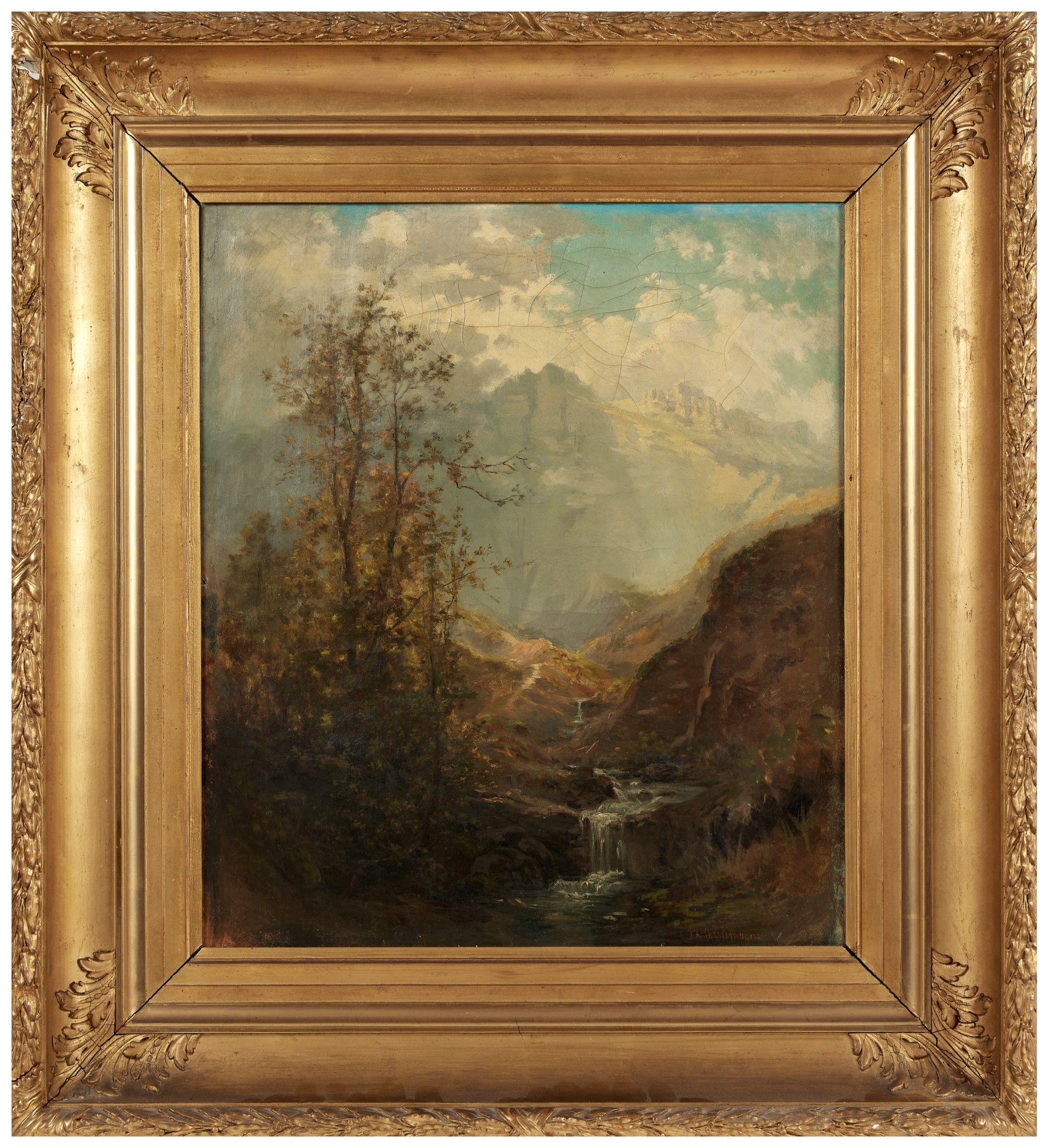 Philippe CHARLEMAGNE (1840-1906) Torrent in the mountains Oil on canvas Signed lower right 56 x 46 cm With frame: 77 x 70 cm Oil on canvas, signed lower right, 22 x 18.1 in, with frame : 30.3 x 27.5 in