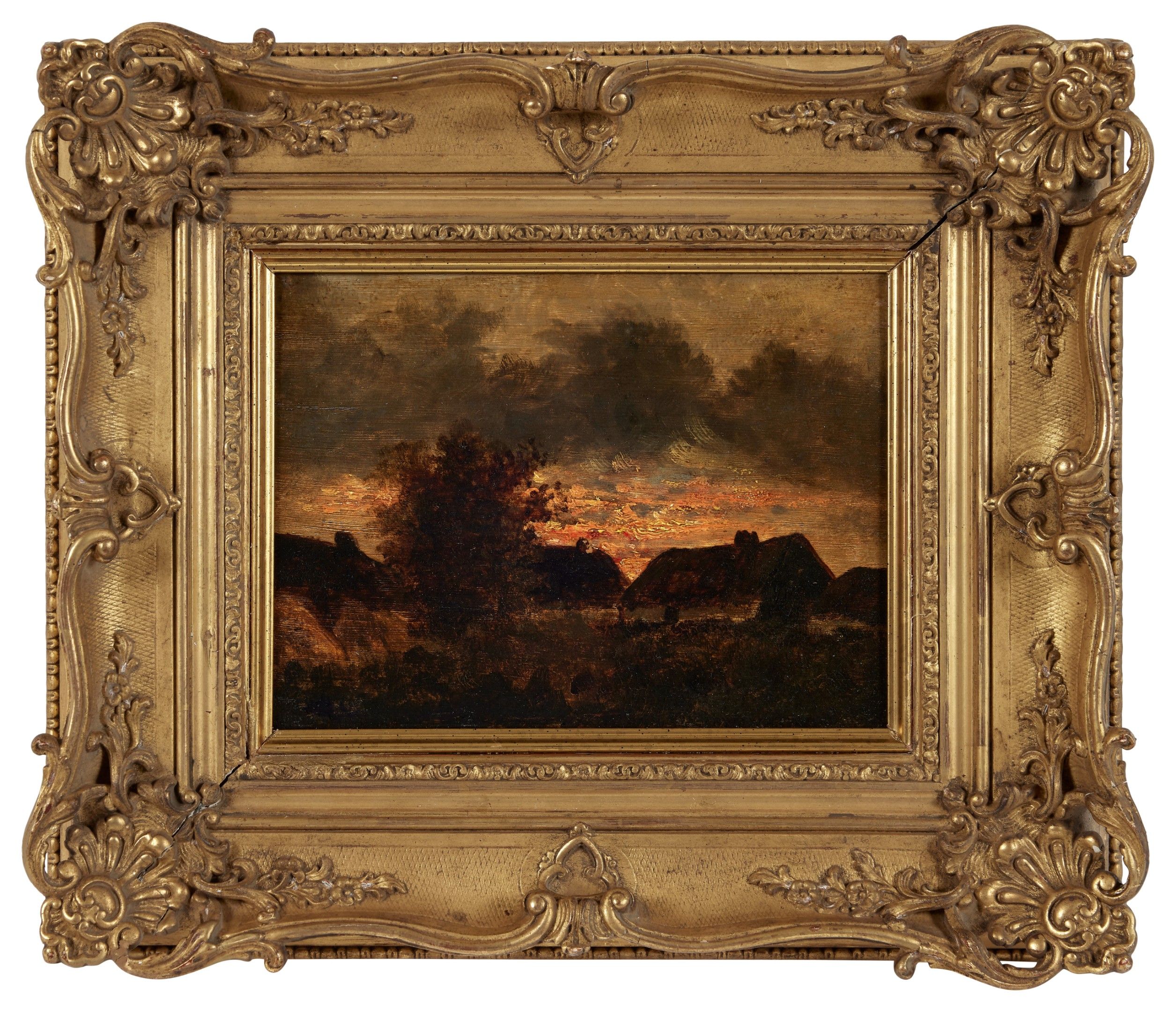Théodore ROUSSEAU (1812-1867) Thatched cottages at dusk