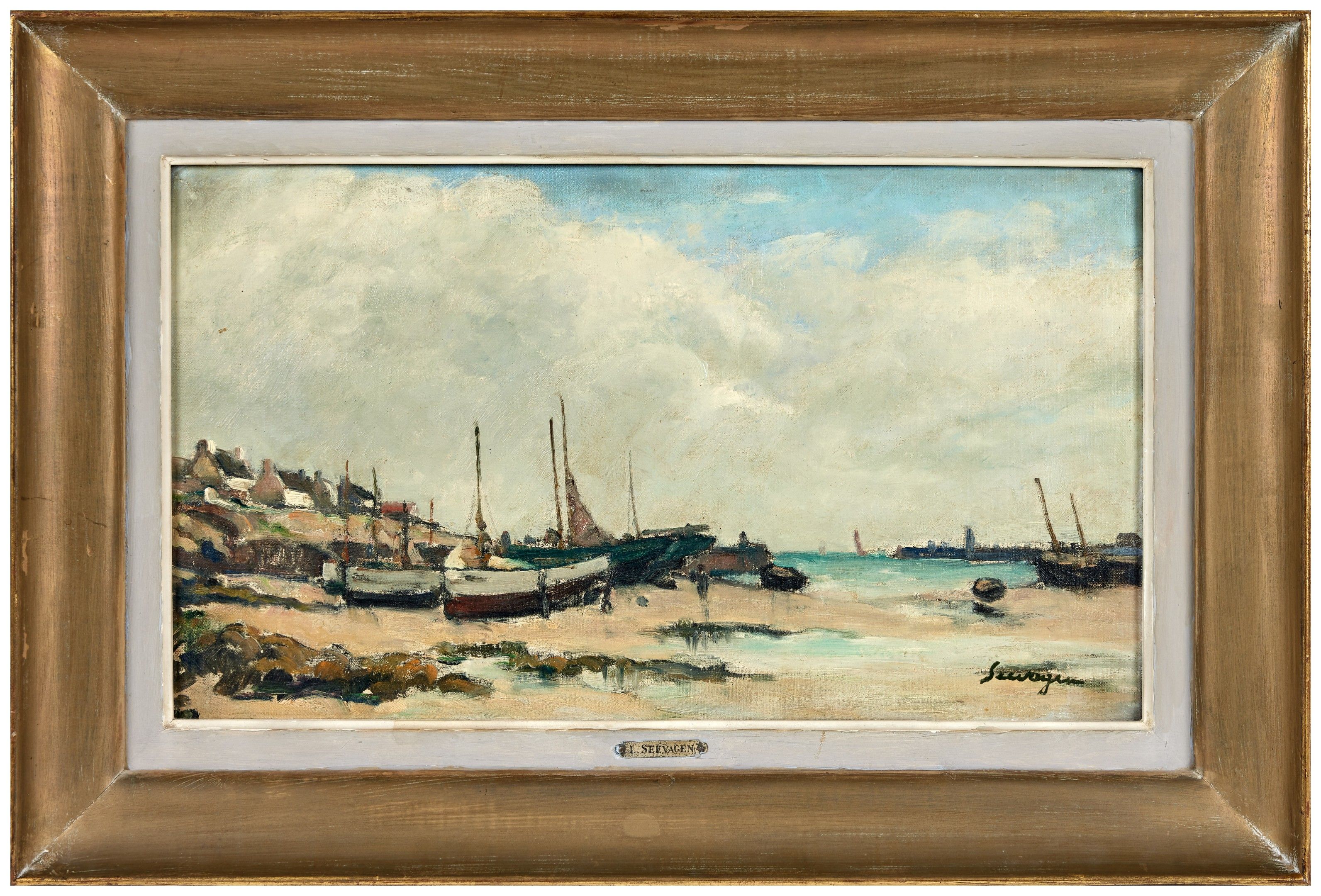 Oil on canvas mounted panel, signed lower right, on the back : exhibition stamp to Rouen, 16.1 x 9.4 in, with frame : 13.7 x 20.5 in
