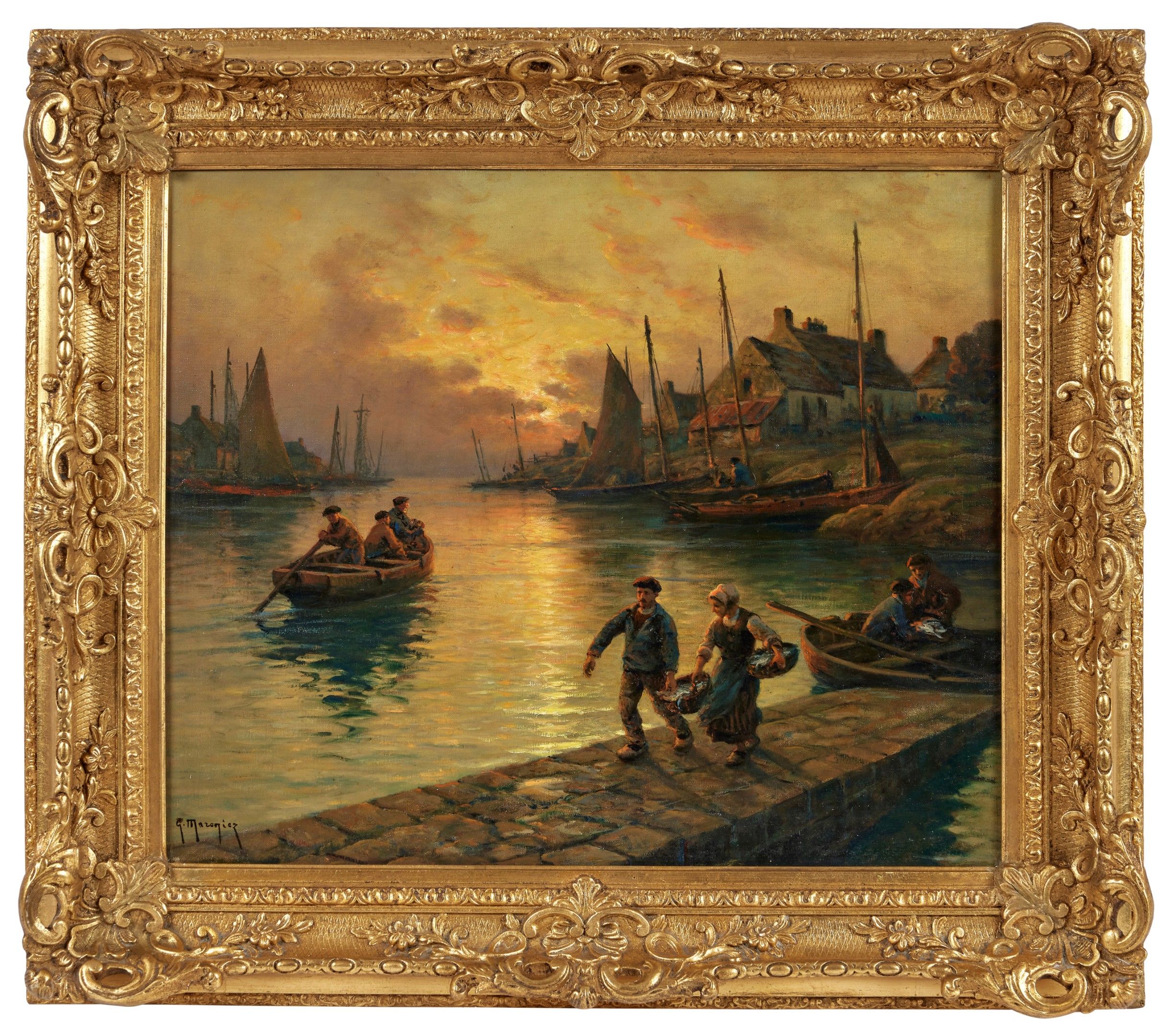 Georges P. MARONIEZ (1865-1933) The return of the fishermen Oil on canvas Signed lower left 46 x 56 cm With frame: 63 x 72 cm Oil on canvas, signed lower left, 18.1 x 22 in, with frame : 24.8 x 28.3 in