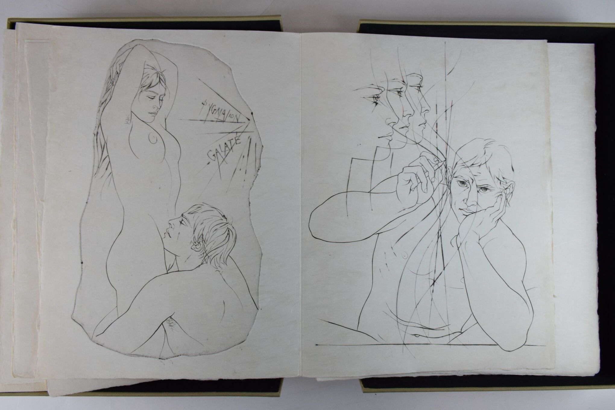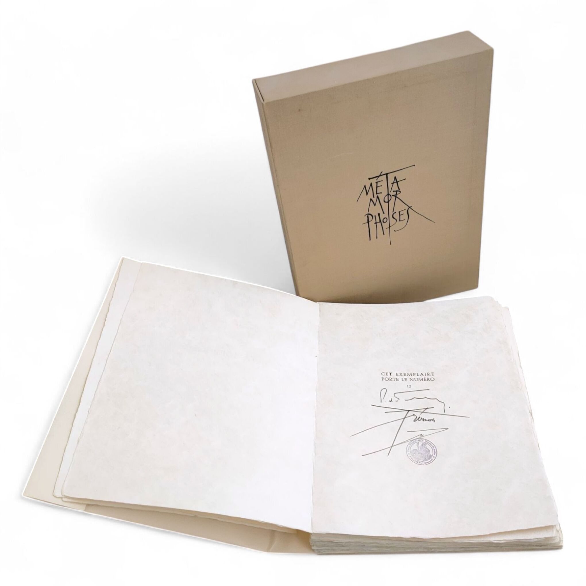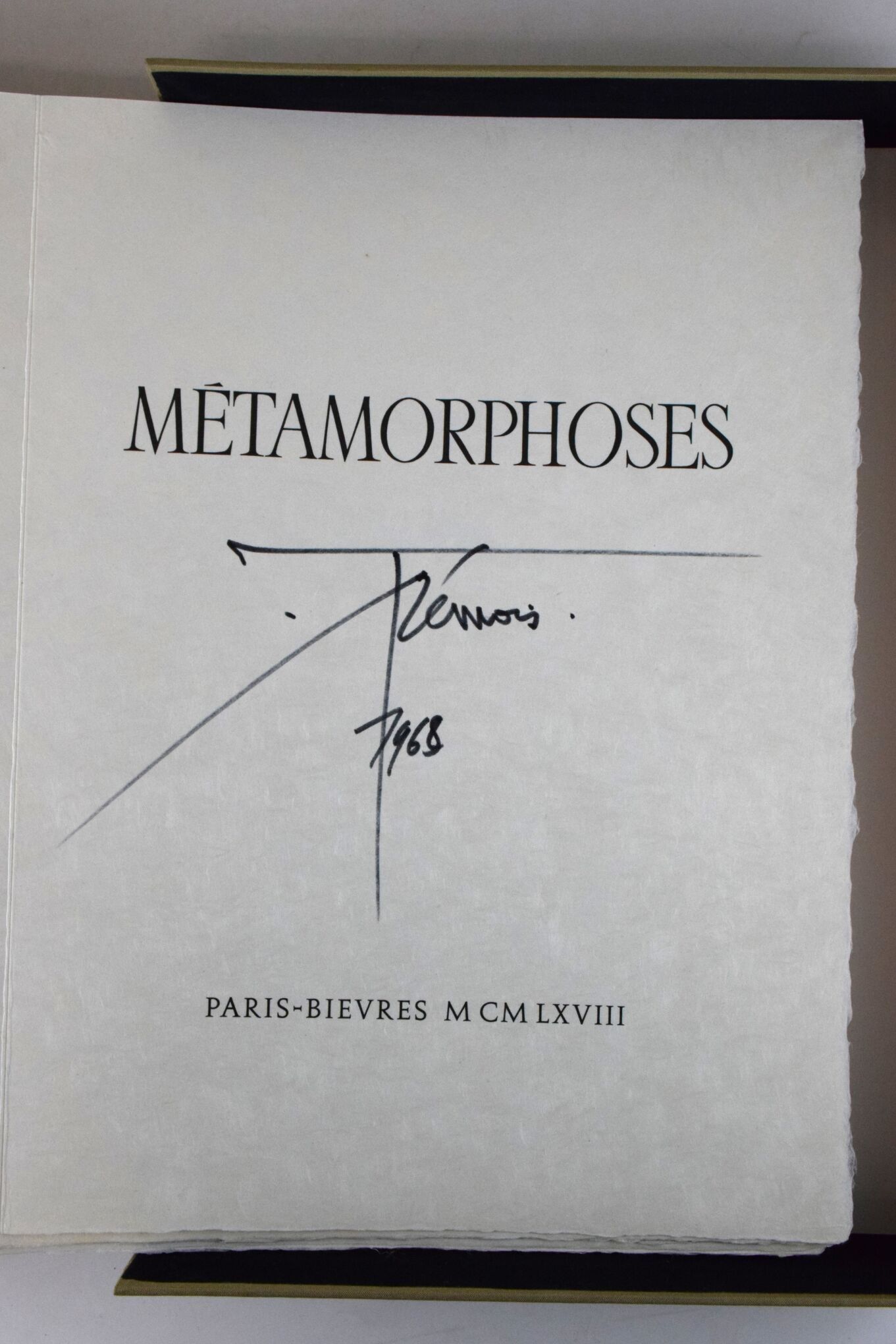 OVIDE. (Pierre-Yves TRÉMOIS, illustrations). Métamorphoses. Bièvres, Moulin de Vauboyen, Pierre de Tartas, 1968. In-folio, illustrated with 22 original engravings by Pierre-Yves Trémois. Edition of 232 copies signed by the publisher and the artist, one of 30 on Japon nacré with a suite of double plates and a suite of rejected plates on Arches vellum. Large signature by Trémois dated 1968 on the title page. In leaves, in publisher's illustrated filled cover and cloth box. A very fine copy.