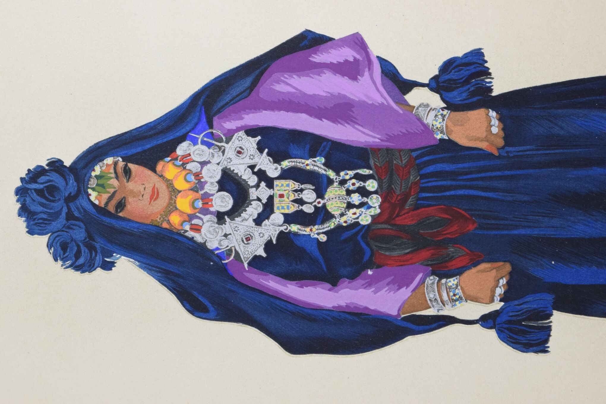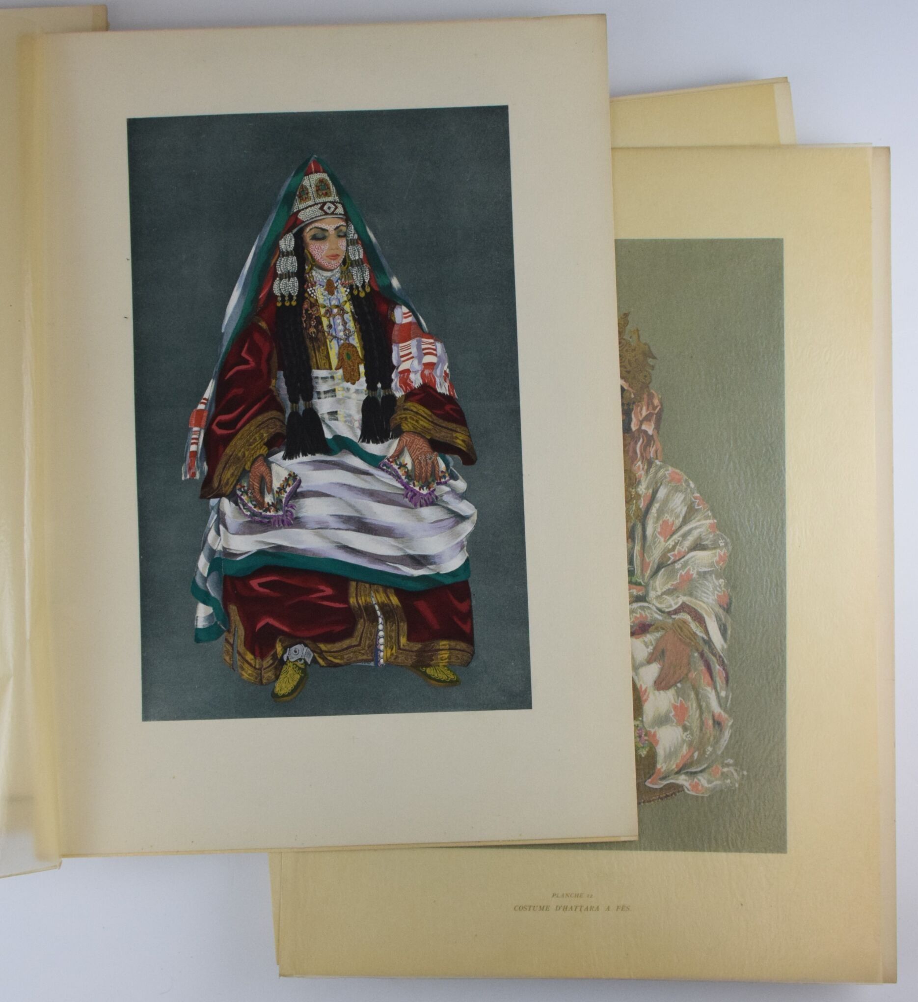 Large in-4 (455x 334 mm), (2 bl.)-(XVI)-65-(5 bl.) pp. 1 map on double leaf, 8 plates of b/w drawings noted A to H of jewellery and costume details, 60 gouaches by Jean BESANCENOT reproduced in colour and monochrome and protected by captioned serpents, some signed in pencil. Unique edition of 310 copies, this one unnumbered. In sheets (preserved in a folder with flaps), plate 12 is in duplicate, first flyleaf dusted, the serpents of plates 1, 8 and 56 are missing, plate 1 is in very poor condition (numerous tears with adhesive on the spine, small holes and soiling), minimal cracks and foxing in the margins of the map, apart from these defects the work is in very good condition.