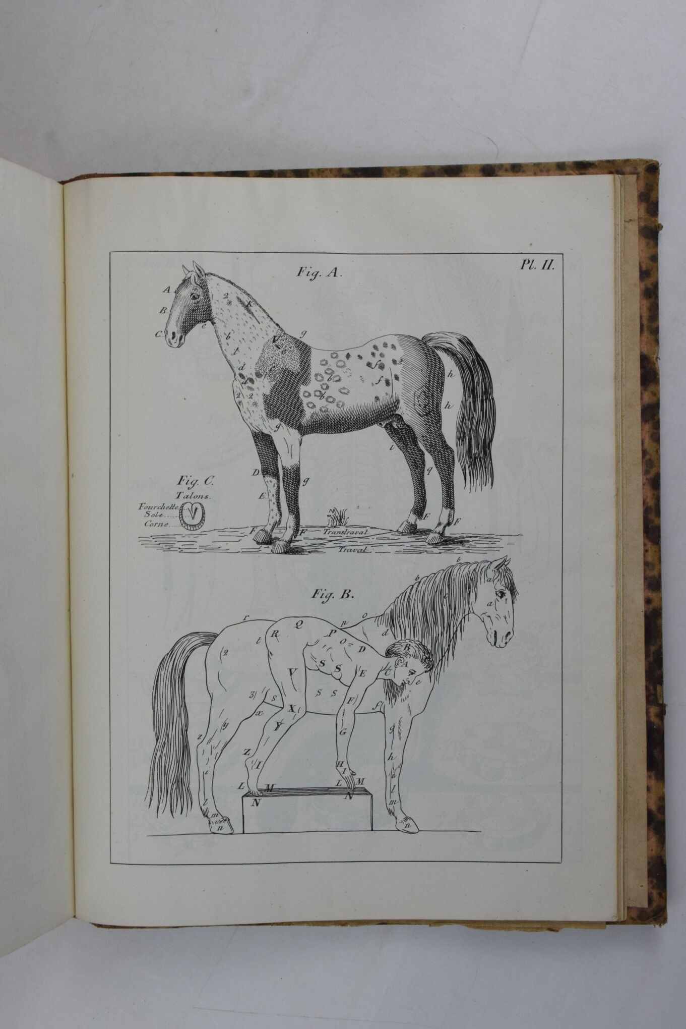 [Equitation] GARSAULT, Fr.-A. de. Le nouveau parfait maréchal, ou La connaissance générale et universelle du cheval, divided into seven treatises. Paris, Niort, L. Bouchard-Huzard, Robin et Cie, 1843. In-4, xxiv-528 pp, 20 plates of plants and XXIX plates. Bound in contemporary half morocco, light spotting in the upper margin. A good copy.