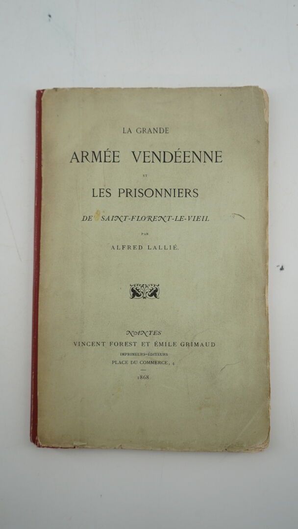LALLIÉ (Alfred) - La Grande Armée Vendéenne et les prisonniers de Saint-Florent-le-Vieil - Nantes ; Vincent Forest et Émile Grimaud, 1868 - 1 pamphlet 8° paperback (spine rebacked) - Good copy printed at 50 copies.