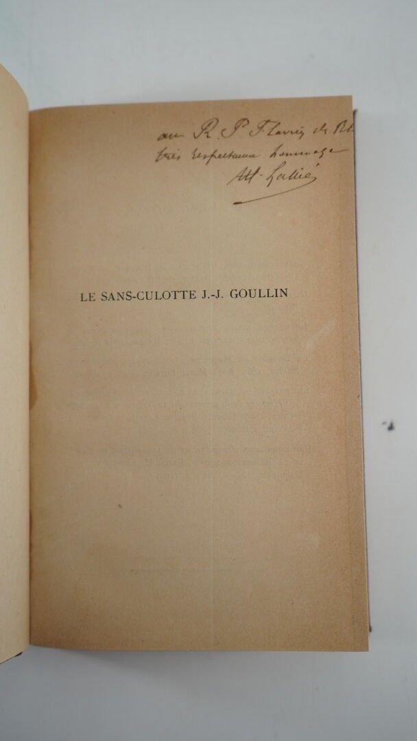 LALLIÉ (Alfred) - Le sans-culotte J.-J. Goulin membre du Comité révolutionnaire de Nantes 1793-1794 - Nantes ; Vincent Forest et Émile Grimaud, 1880 - 1 volume large In-12° - Signed autograph letter from the author to the false title - Bound in modern Havana cloth in the Bradel style signed Clavaux - Black chagrin title-piece on the spine (slightly faded) - A good copy in an original edition of 200.