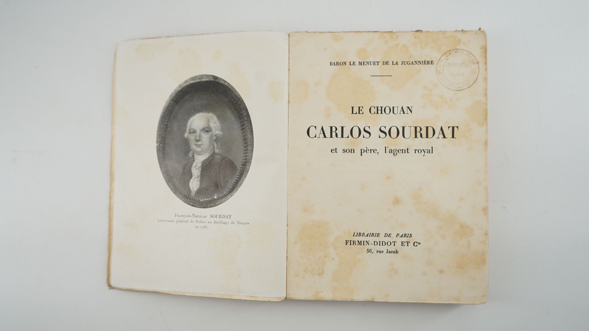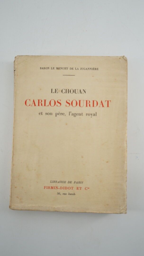 LE MENUET DE LA JUGANNIÈRE (Baron) - Le chouan Carlos Sourdat et son père, l'agent royal - Paris ; Firmin-Didot et Cie, 1932 - 1 volume In-8° paperback - Some scattered foxing - Wet bookplate on title : P. Cathelineau - Good copy.