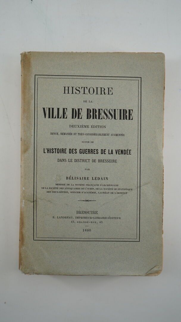 LEDAIN (Bélisaire) - Histoire de la ville de Bressuire [...] suivie de l'histoire des Guerres de la Vendée dans le district de Bressuire - Bressuire ; E. Landreau, 1880 - 1 volume In-8° paperback - Out-of-text plates - A good copy of the considerably enlarged 2nd edition.