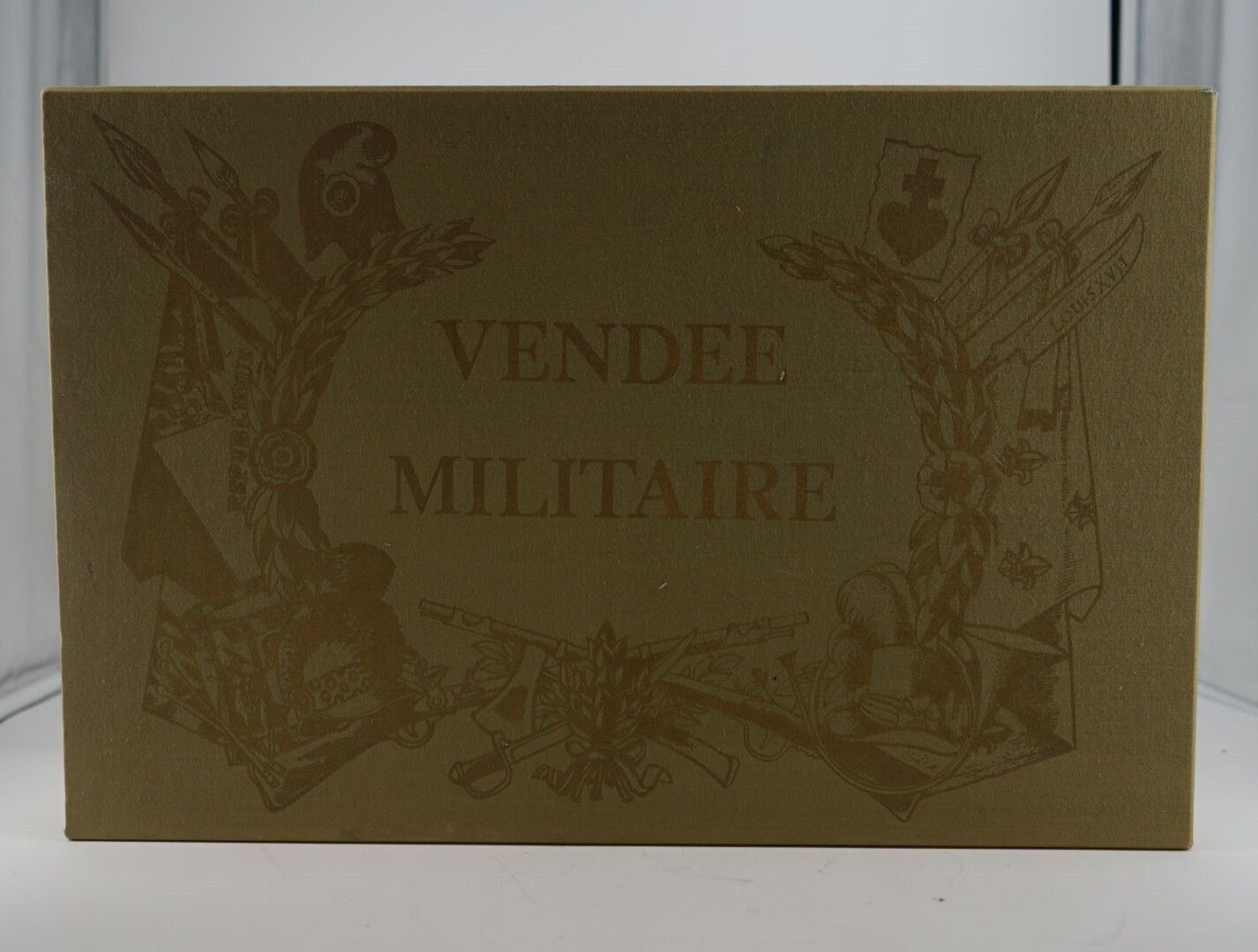 PAGEOT (Jean) - Vendée militaire 1793-1796 - Sans lieu ; Pierre Gauthier Éditeur, 1980 - 1 volume In-folio oblong sheets in soft card cover, titled and richly decorated in colour, khaki cloth folder titled in gold on the spine and slipcase decorated and titled on the 1st plate - 117 coloured vignettes spread over 30 plates by Jean Bruneau - Very good copy in numbered first edition (n°137 of 1000).