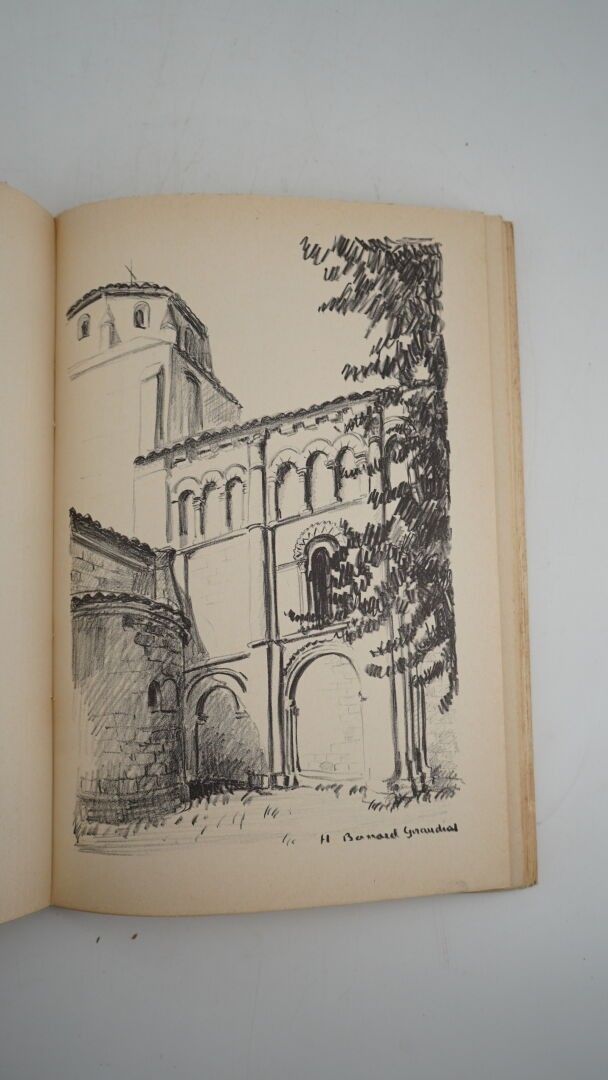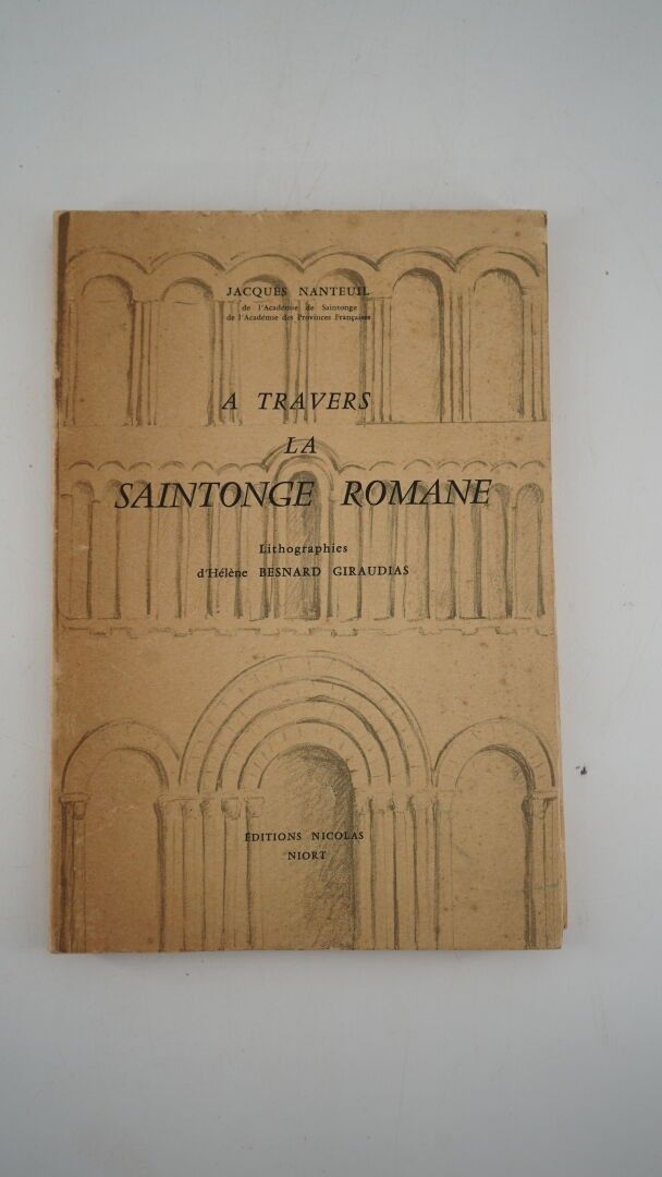 NANTEUIL (Jacques) - A travers la Saintonge romane - Niort ; Éditions Nicolas, 1960 - 1 volume large In-8° paperback with illustrated front cover - Lithographs out of text by Hélène Besnard Giraudias - Good copy.
