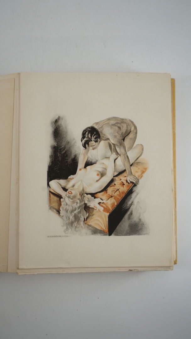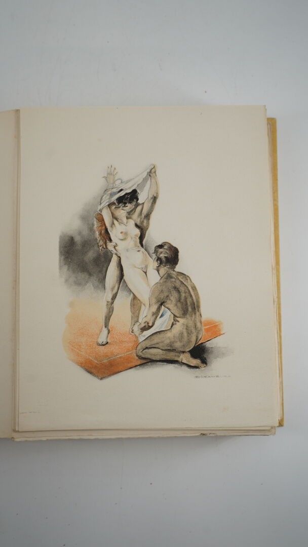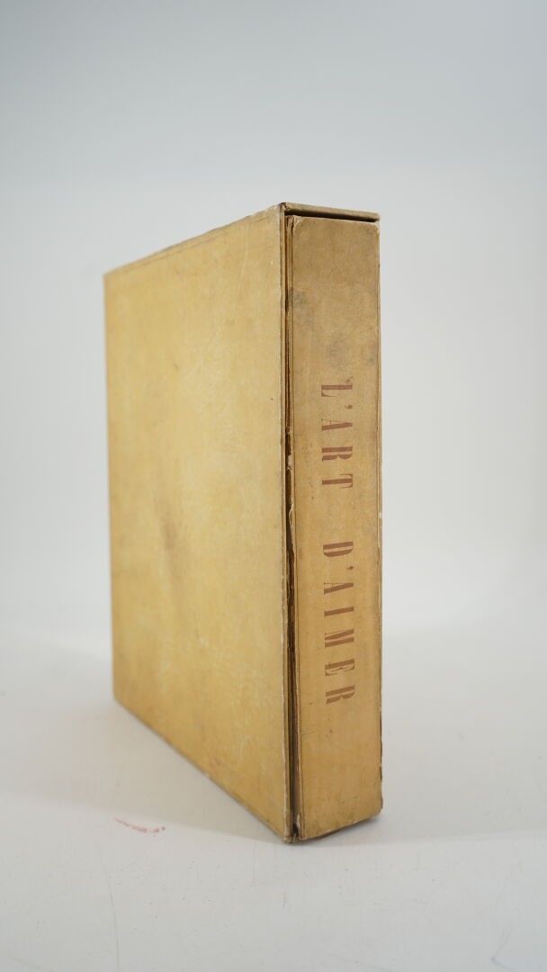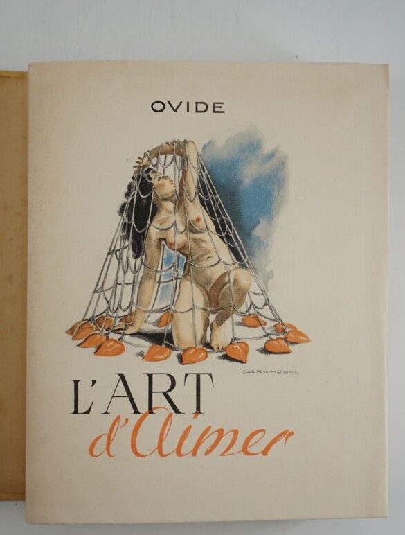 [EROTICA] - OVIDE - L'art d'aimer. Les amours - Paris ; Éditions Athêna, collection Athêna-Bibliophilie, 1948 - 1 volume In-8° in sheets with illustrated full colour cover on the 1st plate, long gold-titled jacket (1st spine split) and slipcase (1 corner split) - 10 erotic compositions out of text coloured with stencil after Derambure's originals - Good numbered copy on Marais-Crèvecœur (n°196 out of 700, 895 total edition).