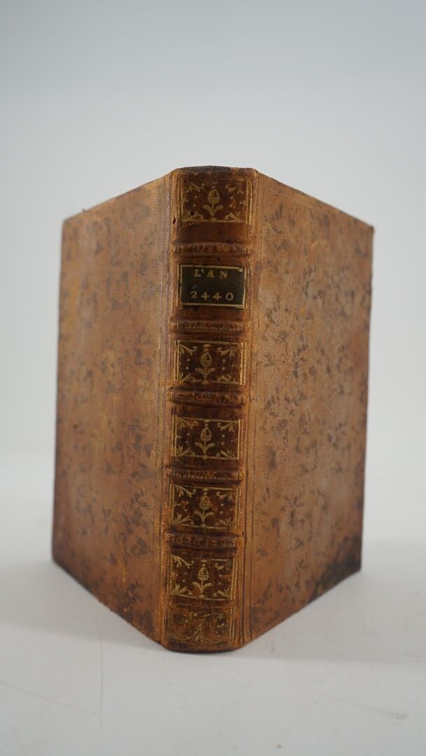 [MERCIER (Louis-Sébastien)] - L'an deux mille quatre cent quarante. Rêve d'il en fût jamais - London [Paris] ; Sans nom, 1775 - 1 volume In-12° - 1 angular halo on the first 33 leaves then on the last 8, 1 very small worm hole at the head of a pin turning into a gallery with some loss of words or letters on 9 leaves - Bound in marbled havana basane (lower part of the 2 covers with halo) - Spine ribbed and decorated - Brown morocco title - Red edges - First published in 1770, This utopia predicted what life in Paris would be like in the twenty-fifth century, in the spirit of Enlightenment philosophy, announcing the end of the temporal power of the popes, the abolition of monks, the cremation of corpses, and aerostats flying to Peking in 7 days, among other things. The author considered himself "the true prophet of the Revolution".