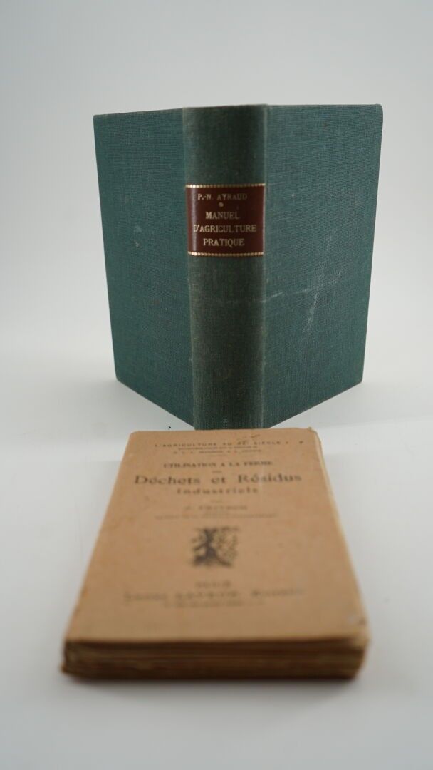 [AGRICULTURE] - AYRAUD (P.-N.) - Manuel d'agriculture pratique à l'usage des agriculteurs des départements de l'Ouest [...] - Fontenay-le-Comte ; P. Robuchon, 1873 - 1 volume In-8° - Contemporary green cloth binding - Covers preserved - Smooth spine - Tan calf title - Very good copy - Attached: FRITSCH (J.) - Utilisation à la ferme des déchets et résidus industriels - Paris ; Lucien Laveur, sans date - 1 volume In-12° broché - Des schémas in texte - 1 partie de l'ouvrage traite de l'utilisation des résidus de vinification.