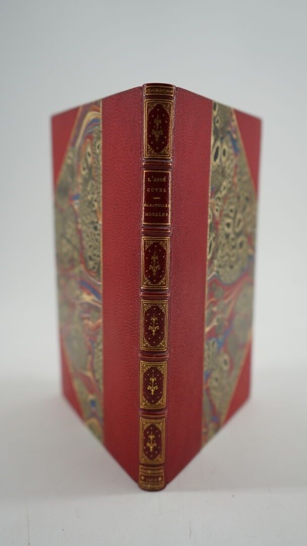 COYER (Abbé) - Bagatelles morales publiées par le bibliophile Jacob - Paris ; Librairie des Bibliophiles, 1884 - 1 volume In-12° - Frontispiece by Ad. Lalauze - Pleasant contemporary binding in cherry half morocco with corners by David - Covers preserved - Attractive spine ribbed and decorated with gold titling and dating - Gilt head - Ex-libris label on 1st spine plate: Am. Berton - A very good copy printed in a very small number, ours being 1 of 20 on Whatman with 2nd state of the frontispiece on Japon and 1 portrait of the author added.