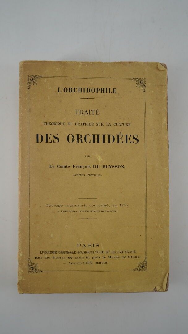 DU BUYSSON (Comte François de) - L'orchidophile. Traité théorique et pratique sur la culture des orchidées - Paris ; Librairie Centrale d'Agriculture et de Jardinage, Auguste Goin, 1878 - 1 volume In-8° paperback (small tears on 2nd plate, jaws partially split) - Good copy inside.