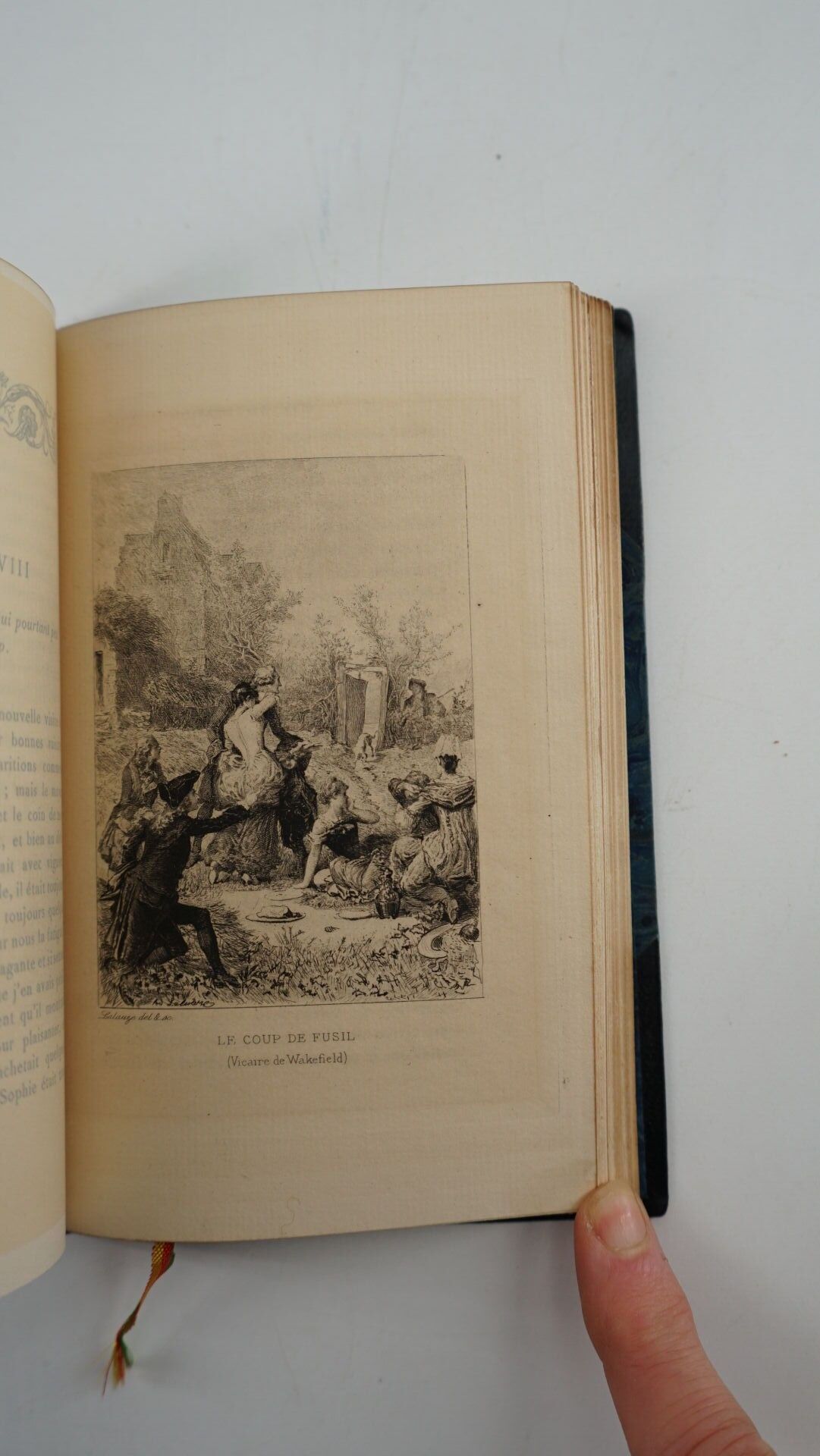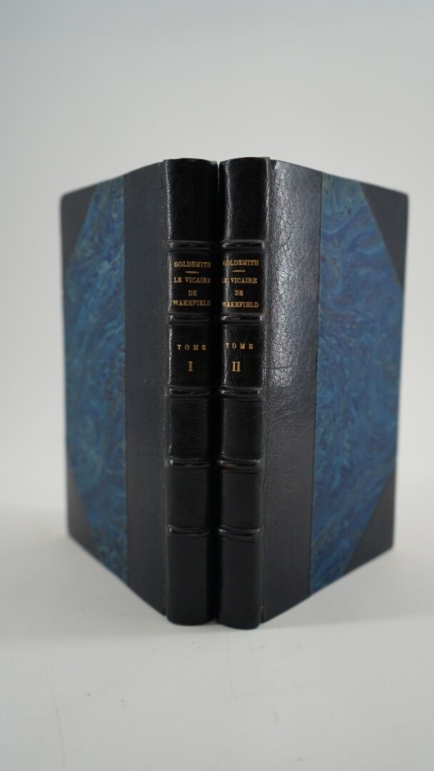 GOLDSMITH (Oliver) - The Vicar of Wakefield. Translation, preface and notes by Charles Nodier - Paris ; Librairie des Bibliophiles, 1888 - 2 volumes In-12° - Portrait frontispiece and out-of-text etchings by Ad. Lalauze - Bound in the 1st half of the 20th century in half navy morocco with corners - Covers and spine preserved - Spine ribbed, titled and stamped in gold - Heads gilt - A very good copy printed in a small number.