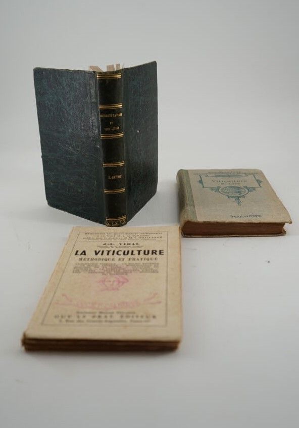 [VIN] - Ensemble de 3 volumes - GUYOT (Docteur Jules) - Culture de la vigne et vinification - Paris ; Librairie Agricole de la Maison Rustique, 1861 - 1 volume In-12° - Des gravures - Reliure de l'époque demi-veau noir - Dos lisse orné et titré or -CHANCRIN (E.) - Viticulture moderne - Paris ; Hachette, sans date - 1 volume In-12° - Frontispice et 207 figures in texte - Reliure éditeur cartonnage titré - VIDAL (J.-L.) - La viticulture méthodique et pratique - Paris ; Guy Le Prat, no date - 1 volume In-12° paperback - Off-text plates .