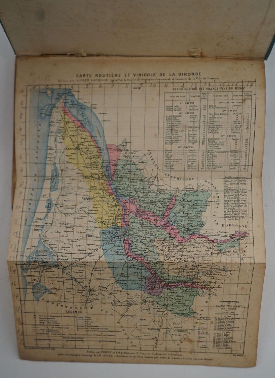 [VIN] - FERET (Édouard) - Les vins du Médoc classés par ordre de mérite - Bordeaux ; Feret et Fils, Paris ; Libraires Associés, 1897 - 1 volume In-12° - 1 fold-out map in colour as frontispiece - Numerous engravings of châteaux in text by Eug. Vergez - Bound in publisher's blue cloth with gold titling on the 1st plate and spine (slightly soiled) - Illustrated in French.
