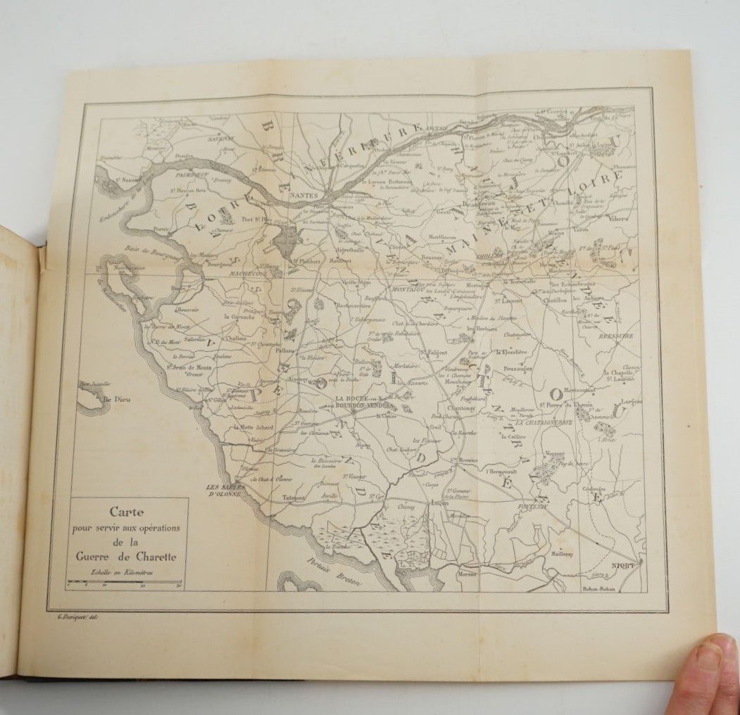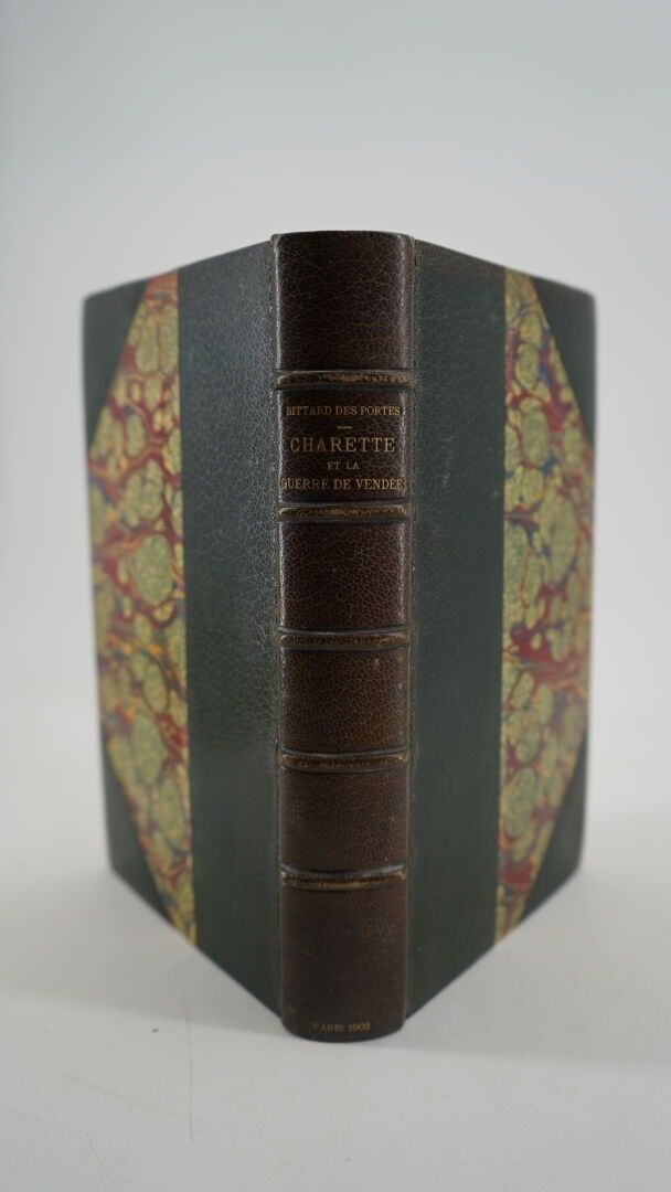 BITTARD DES PORTES (René) - 1793-1796 : Charette et la guerre de Vendée - Paris ; Émile Paul, 1902 - 1 volume In-8° - Some scattered foxing at the beginning and end of the work - 1 folding map in fine - Beautiful later binding in dark green half morocco with corners - Spine ribbed (darkened) titled, localised and dated in gold - Gilt head - Gilt bookplate on red morocco of the Countess de Clinchamp on the 1st spine plate - Good copy in first edition.