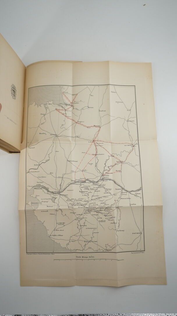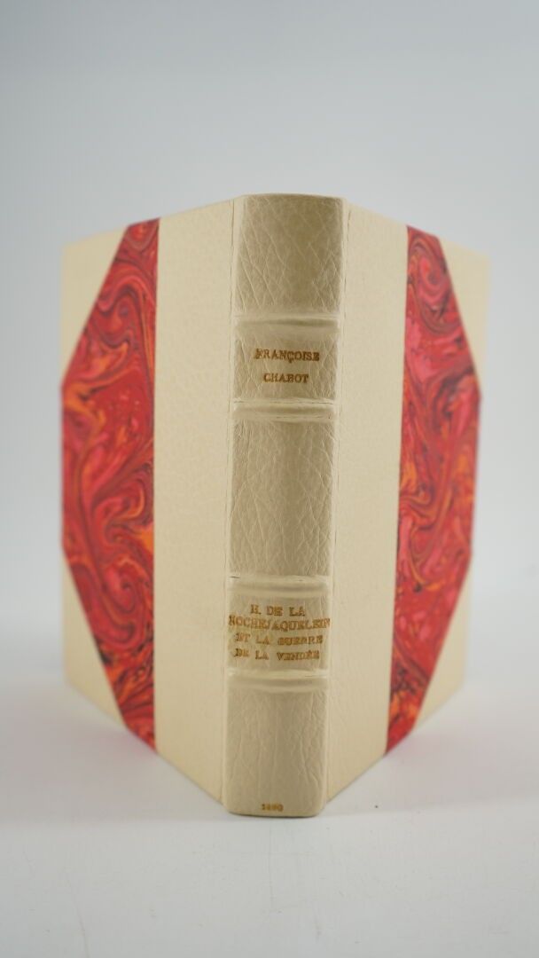 [CHABOT (Françoise de)] - Henri de La Rochejaquelein et la Guerre de la Vendée d'après des documents inédits - Paris ; H. Champion, Niort ; L. Clouzot, 1890 - 1 volume In-8° - Portrait frontispiece, 1 facsimile plate, 1 etching by Octave de Rochebrune hors texte and 1 folding map in fine - Bound in the 2nd half of the 20th century in cream ribbed half morocco with corners - Covers and spine preserved - Spine ribbed titled and dated in gold - A good copy of the first edition printed in an edition of 100 copies, this being one of 75 copies on Hollande.