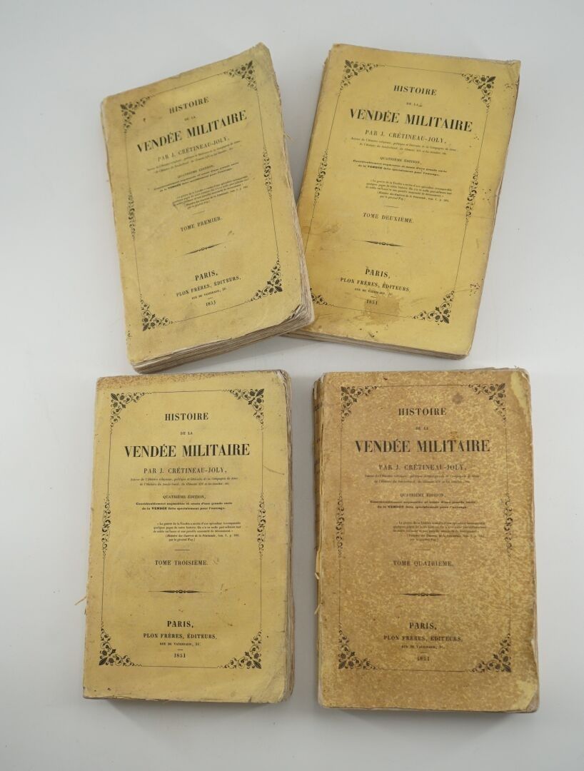 CRÉTINEAU-JOLY (J.) - Histoire de la Vendée militaire - Paris ; Plon Frères, 1850 - 4 volumes large In-8° paperback (spines split in 3 volumes with paper missing, volume I separated in 2) - Map missing - 4th edition as is.