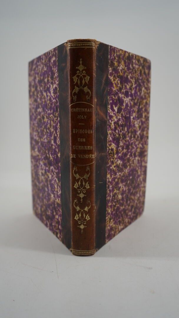 CRÉTINEAU-JOLY (J.) - 1793-1815-1832 - Épisodes des Guerres de la Vendée précédées d'un tableau historique de cette contrée depuis la révolution de Juillet - Paris ; Pillet Aîné, 1834 - 1 volume In-8° - Some freckling and yellowed leaves - Engraved frontispiece and 1 plate out of text - Bound in later half brown marbled basane - Covers preserved - Smooth spine decorated and titled in gold - First edition.