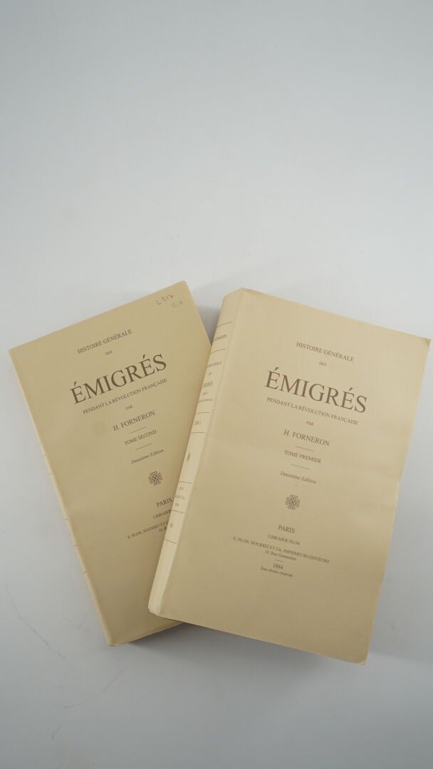 FORNERON (H.) - Histoire générale des émigrés pendant la Révolution française - Paris ; E. Plon, Nourrit et Cie, 1884 - 2 volumes In-8° stapled - Very good copy in 2nd edition.