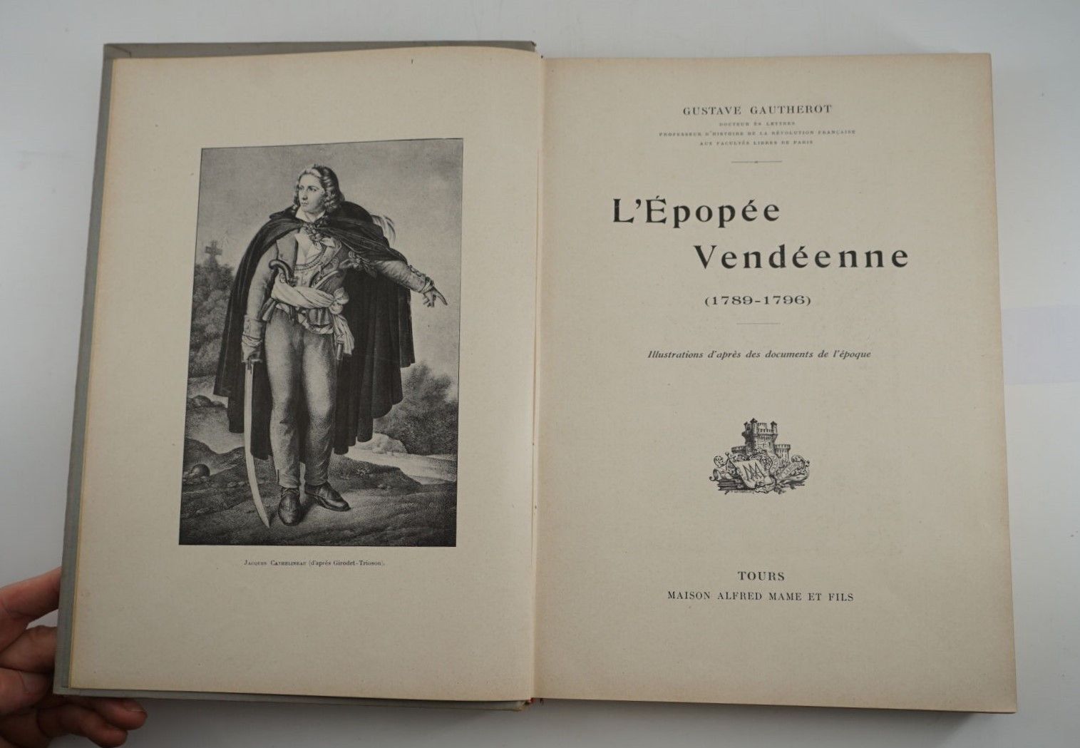 GAUTHEROT (Gustave) - L'épopée vendéenne (1789-1796) - Tours ; Maison Alfred Mame et Fils, [1927] - 1 volume In-4° - 125 engravings including 10 heliogravures out of text - Publisher's beige cloth binding decorated with 1 gilt fleur-de-lys - Smooth spine decorated with fleur-de-lys and titled in black - Gilt edges - A good copy.