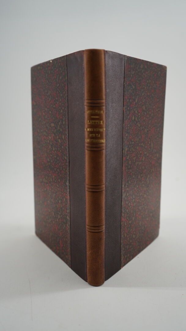 GUILLEMOT (M.J.) - Lettre à mes neveux sur la chouannerie - Nantes ; Imprimerie Félix Masseaux, 1859 - 1 volume In-8° - A few rare small scattered freckles - Bound in contemporary brown half-chagrin - Spine ribbed (faded) decorated with cold fillets and titled in gold - Ex-libris label on 1st counter plate with motto: Quand il plaira Dieu - A good copy of the first edition.