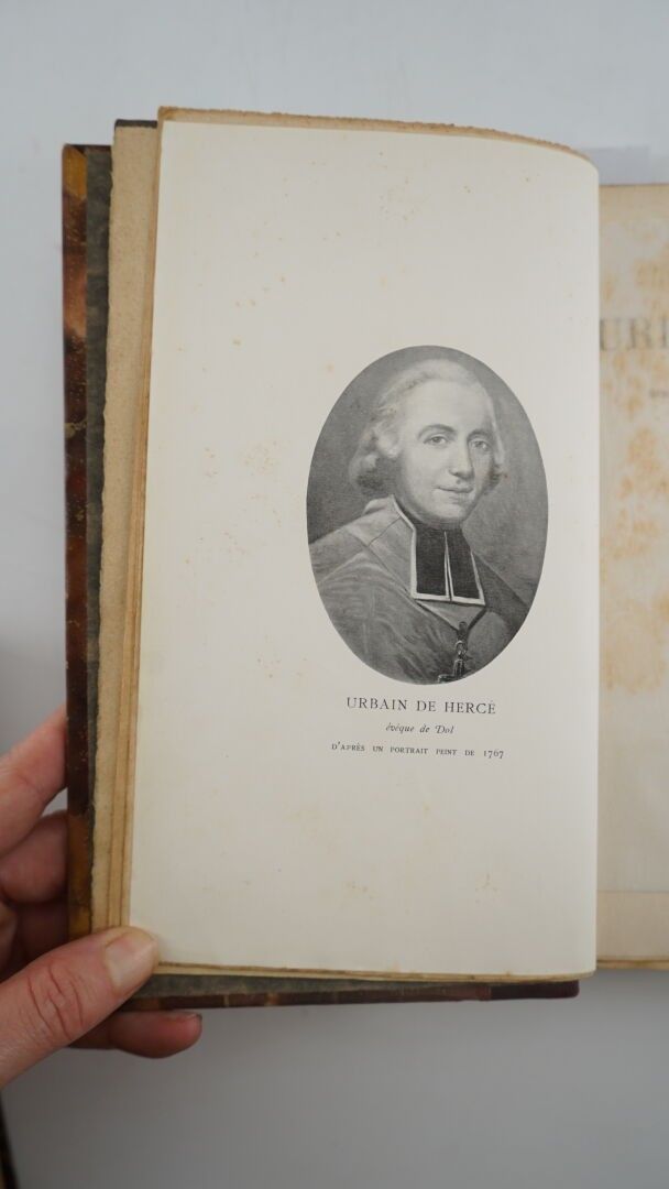 ROBERT (Charles) - Urbain de Hercé. Dernier évêque et Comte de Dol Grand aumônier de l'Armée catholique et royale fusillé à Vannes en 1795 d'après des documents inédits - Paris ; Victor Retaux, sans date - 1 volume In-8° - Quelques rousseurs éparses - 2 portraits dont 1 frontispice, 1 carte in fine - Binding demi-veau bordeaux - Covers (foxed) preserved - Spine gilt ribbed and titled in gold - Good copy.